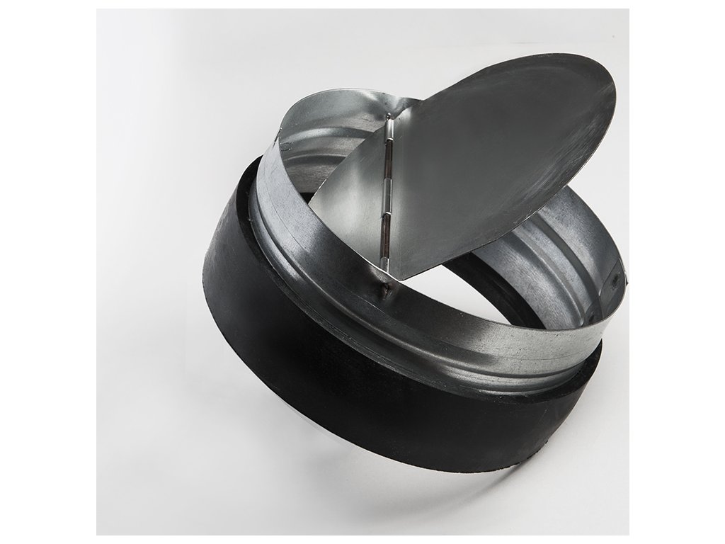 Balení obsahuje zpětnou klapku s gumovou manžetou průměru 135 mm a šířky 30 mm pro snadné propojení s vnějším potrubím.