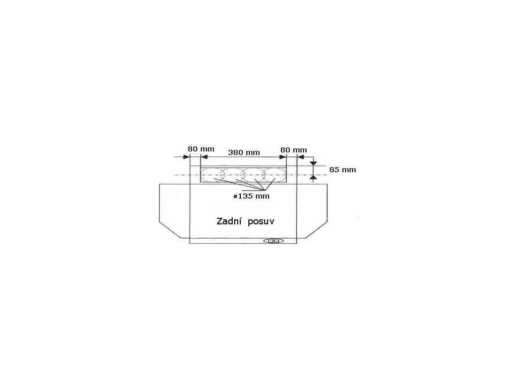 Posuvný odtah na zadní straně odsavače v rozsahu 60 až 440 mm od boční stěny.
