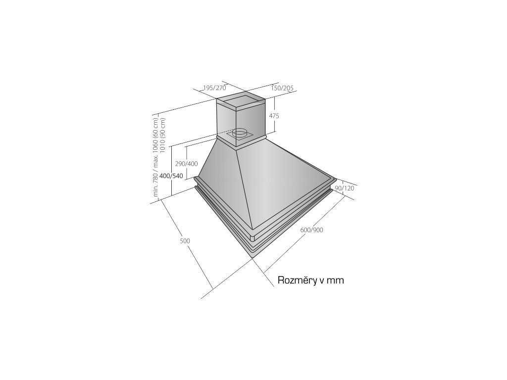 Rustikální komínová digestoř, šíře 60 cm, bílá / nemořená buková lišta, max. výkon 405 m3/h (5 Pa), hlučnost Lw 51 – 61 dB(A), 3 rychlosti, odsávací jednotky mají individuálně vyvažovanou turbínu, motory jsou opatřené vratnými tepelnými pojistkami (při přetížení motoru vypne, po jeho vychladnutí opět sepne), mechanické posuvné ovládání, kovové sendvičové tukové filtry, které lze mýt v myčce, možnost práce v odtahovém i recirkulačním režimu, výstupní průměr 120 mm, Výbava: úsporné LED osvětlení 2 × 2 W, zdarma zpětná klapka, Benefity: nemořená dřevěná lišta umožňuje individuální barevné doladění třeba podle materiálu kuchyně