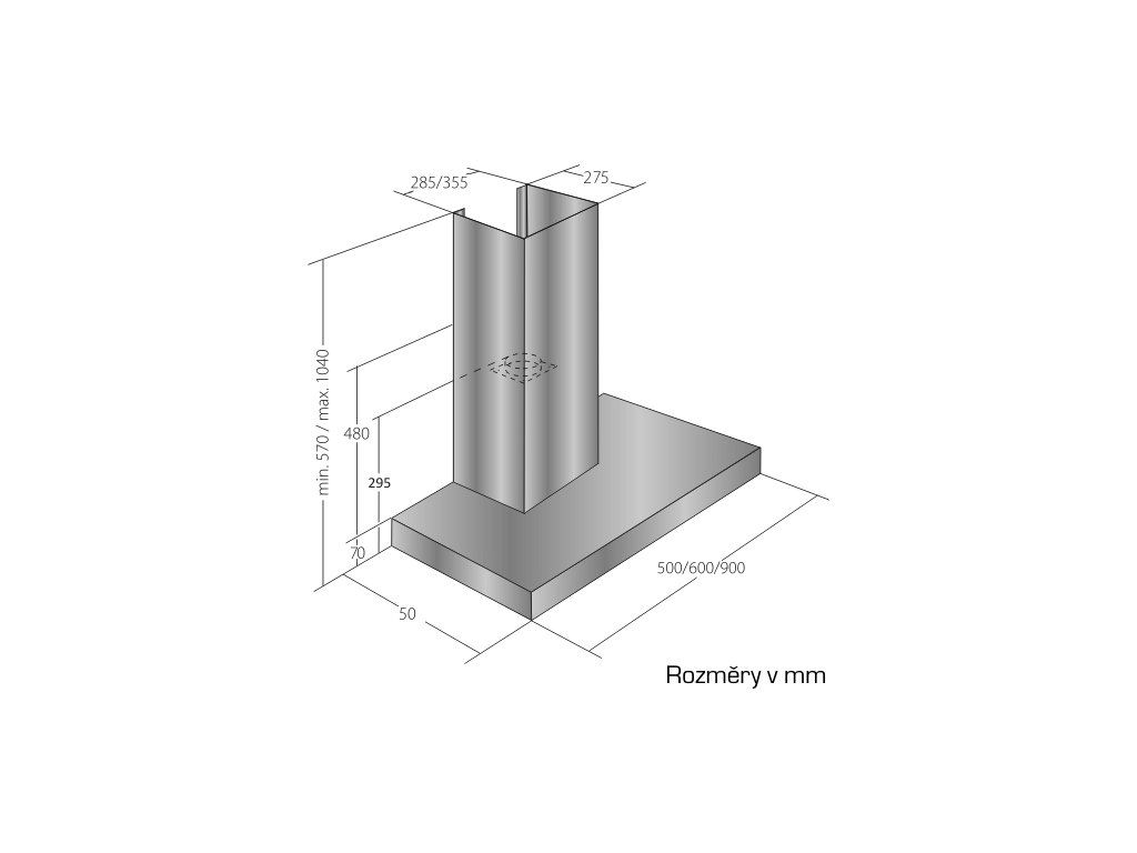 | Min. výška nad elektrickou deskou: | 500 |