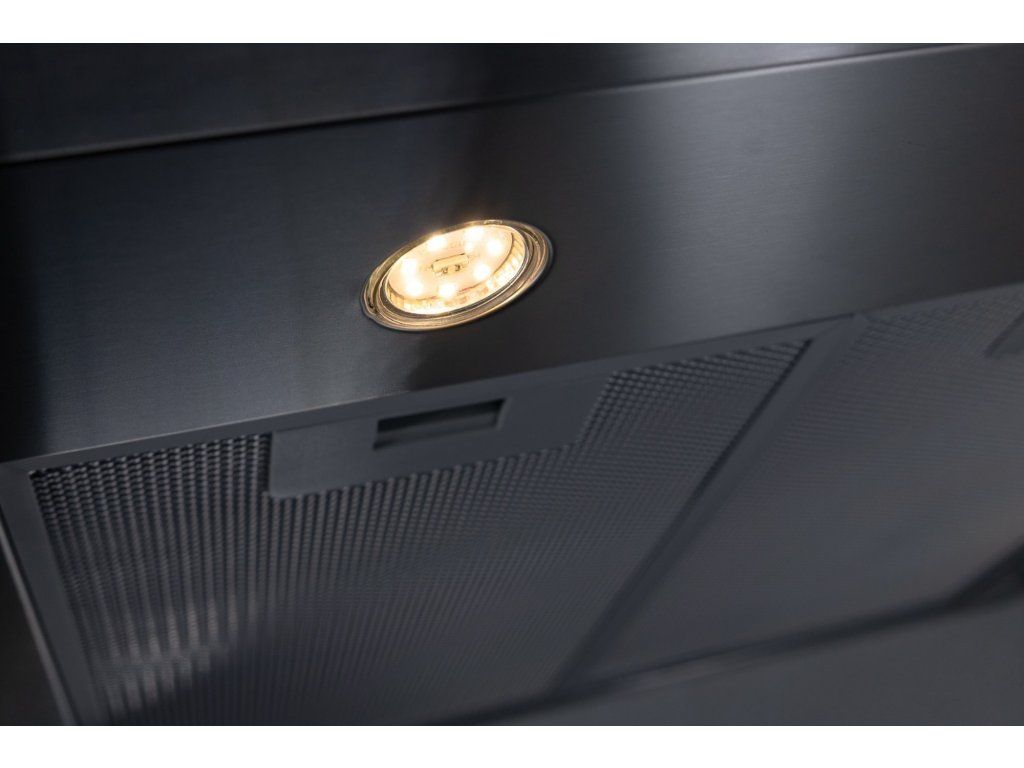 Komínová digestoř ke zdi, šíře 50 cm, nerez, max. výkon 410 m3/h (5 Pa), hlučnost Lw 48 – 69 dB(A), 3 rychlosti, odsávací jednotky mají individuálně vyvažovanou turbínu, motory jsou opatřené vratnými tepelnými pojistkami (při přetížení motoru vypne, po jeho vychladnutí opět sepne), mechanické tlačítkové ovládání, kovové sendvičové tukové filtry, které lze mýt v myčce, možnost práce v odtahovém i recirkulačním režimu, výstupní průměr 150 mm, Výbava: úsporné LED osvětlení 2 × 2 W, zdarma redukce na 120 mm a zpětná klapka
