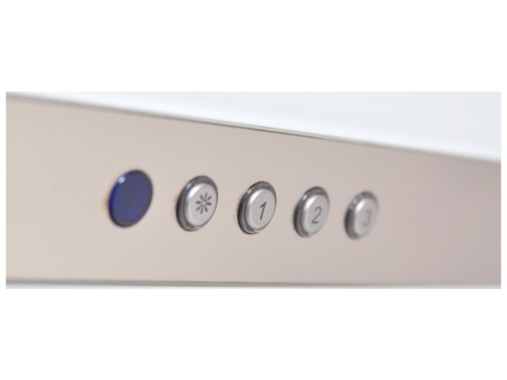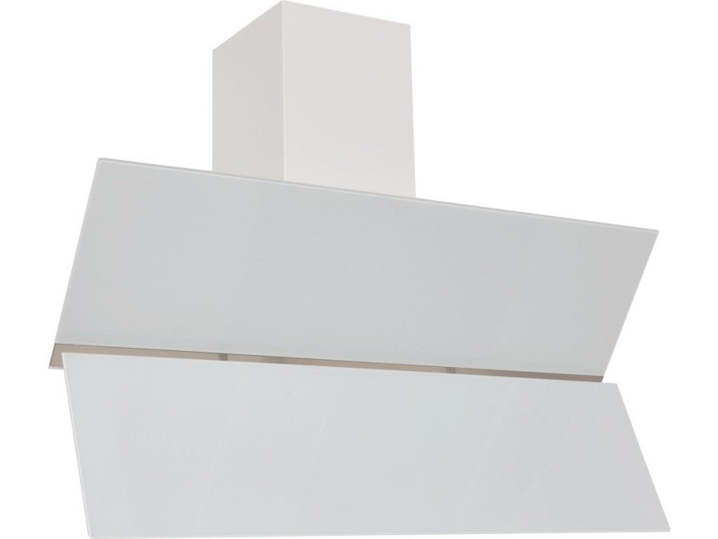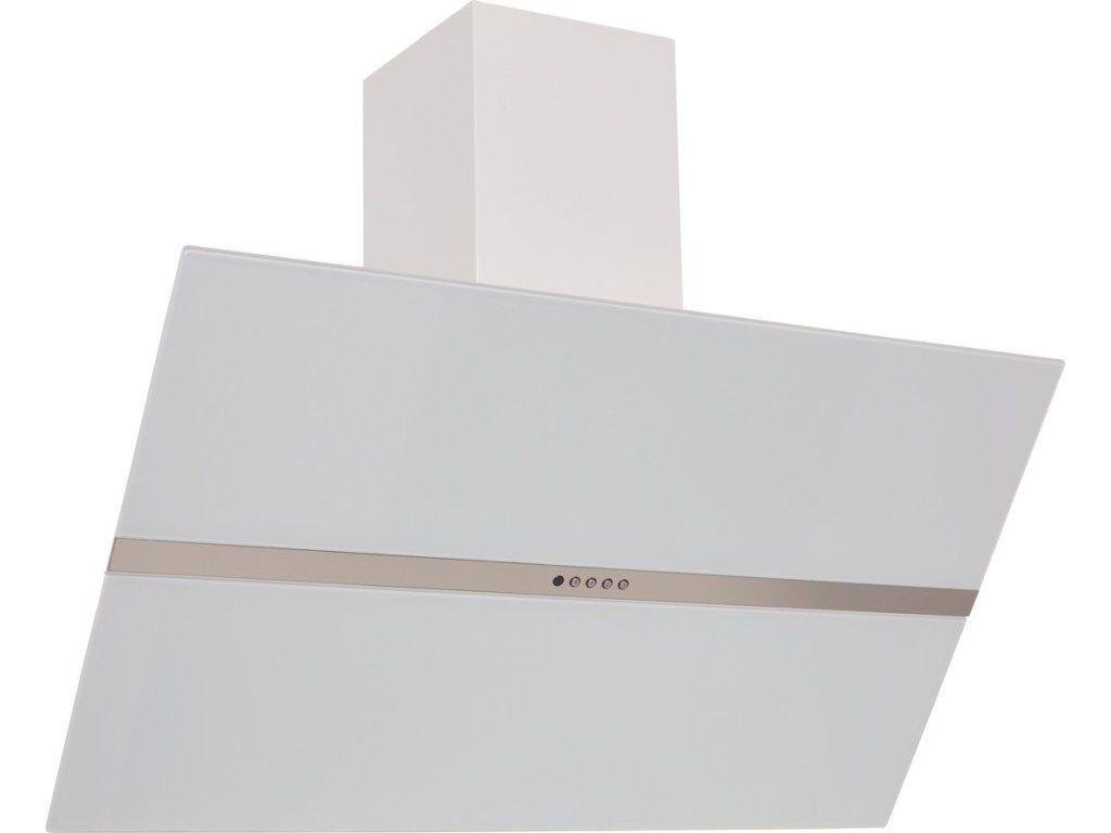 Komínová digestoř ke zdi, šíře 90 cm, bílá / bílé sklo, max. výkon 405 m3/h (5 Pa), hlučnost Lw 51 – 61 dB(A), 3 rychlosti, elektronické tlačítkové ovládání s doběhovým časovačem, odsávací jednotky mají individuálně vyvažovanou turbínu, motory jsou opatřené vratnými tepelnými pojistkami (při přetížení motoru vypne, po jeho vychladnutí opět sepne), kovové sendvičové tukové filtry, které lze mýt v myčce, možnost práce v odtahovém i recirkulačním režimu, výstupní průměr 150 mm, Výbava: úsporné LED osvětlení 2 × 2 W, zdarma redukce na 120 mm a zpětná klapka, zdarma dálkový ovladač i s bateriemi, Benefity: používání dálkového ovládání usnadňuje údržbu digestoře (méně otisků na digestoři = snazší čištění), ovladač je opatřený magnetem, lze jej přichytit třeba na dveře lednice (může být snadno po ruce, nikam nezapadne), šikmá digestoř zvětšuje manipulační prostor nad varnou deskou a výrazně omezuje riziko bouchnutí se do hlavy o digestoř, šikmá digestoř může být instalovaná o 10-15 cm níž, než digestoře s rovnou spodní částí (snazší dostupnost ovládacích prvku i pro osoby menšího vzrůstu)