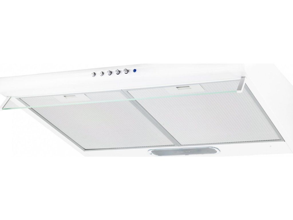 Podskříňková digestoř, šíře 50 cm,bílá, max. výkon 160 m3/h (15 Pa), hlučnost Lw 50 – 61 dB(A), 3 rychlosti, mechanické tlačítkové ovládání, kovové sendvičové tukové filtry, které lze mýt v myčce, možnost práce v odtahovém i recirkulačním režimu, výstupní průměr 120 mm, LED 1 × 4 W, Výbava: zdarma zpětná klapka