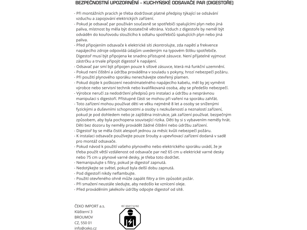 | Min. výška nad elektrickou deskou: | 500 |
