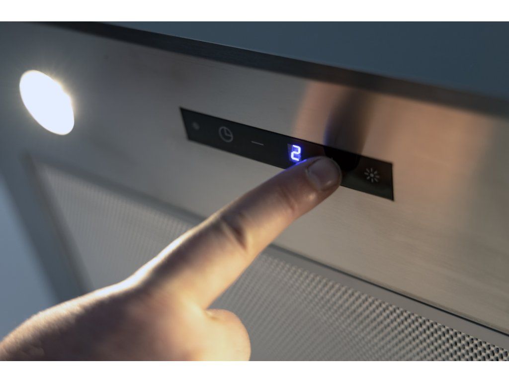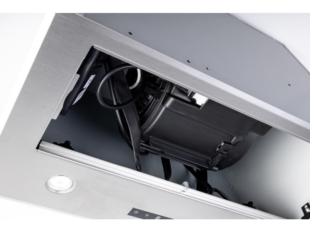 Vestavná digestoř, šíře 60 cm, nerez, max. výkon 822 m3/h (5 Pa), hlučnost Lw 51 – 69 dB(A), 3 rychlosti + TURBO, odsávací jednotky mají individuálně vyvažovanou turbínu, motory jsou opatřené vratnými tepelnými pojistkami (při přetížení motoru vypne, po jeho vychladnutí opět sepne), kovové sendvičové tukové filtry, které lze mýt v myčce, výstupní průměr 150 mm, možnost práce v odtahovém i recirkulačním režimu, Výbava: úsporné LED osvětlení 4 × 2 W, elektronické dotykové ovládání s doběhovým časovačem, zdarma dálkový ovladač i s bateriemi, zdarma redukce na 120 mm a zpětná klapka, Benefity: používání dálkového ovládání usnadňuje údržbu digestoře (méně otisků na digestoři = snazší čištění), ovladač je opatřený magnetem, lze jej přichytit třeba na dveře lednice (může být snadno po ruce, nikam nezapadne) Recirkulační režim u vestavných digestoří: Digestoř se osadí uhlíkovým pachovým filtrem. Přefiltrovaný vzduch se z digestoře odvádí obdobně jako u odtahového režimu trubkou, která prochází celou skříňkou. Tato trubka však neústí kolenem do zdi, ale nad skříňku, kde ji doporučujeme zakončit mřížkou. Pro výrobu skříňky je směrodatný rozměrový nákres a údaje v něm uvedené. Fotografie digestoří jsou ilustrační.