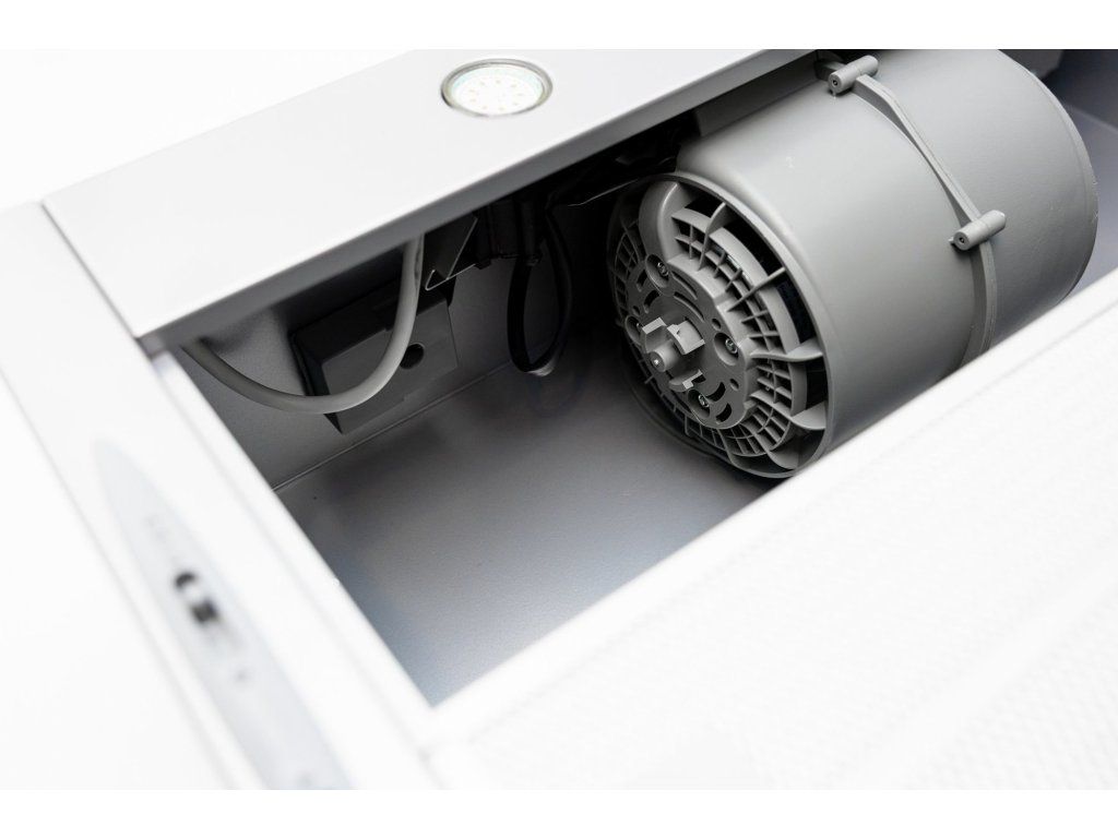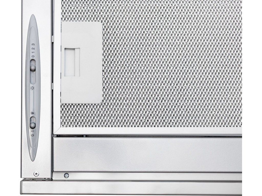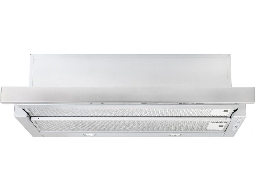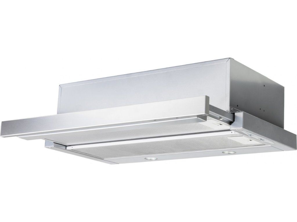 Vestavná digestoř výsuvná, šíře 50 cm, šedá s nerez lištou, max. výkon 266 m3/h (15 Pa), hlučnost Lw 54 – 62 dB(A), 3 rychlosti, odsávací jednotky mají individuálně vyvažovanou turbínu, motory jsou opatřené vratnými tepelnými pojistkami (při přetížení motoru vypne, po jeho vychladnutí opět sepne), mechanické posuvné ovládání, kovové sendvičové tukové filtry, které lze mýt v myčce, možnost práce v odtahovém i recirkulačním režimu, Výbava: úsporné LED osvětlení 2 × 2 W, zdarma zpětná klapka Recirkulační režim u vestavných digestoří: Digestoř se osadí uhlíkovým pachovým filtrem. Přefiltrovaný vzduch se z digestoře odvádí obdobně jako u odtahového režimu trubkou, která prochází celou skříňkou. Tato trubka však neústí kolenem do zdi, ale nad skříňku, kde ji doporučujeme zakončit mřížkou. Pro výrobu skříňky je směrodatný rozměrový nákres a údaje v něm uvedené. Fotografie digestoří jsou ilustrační.