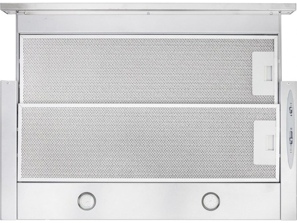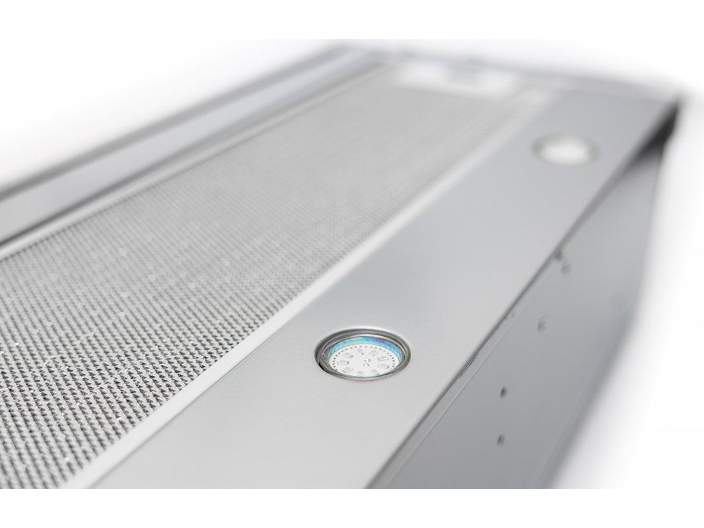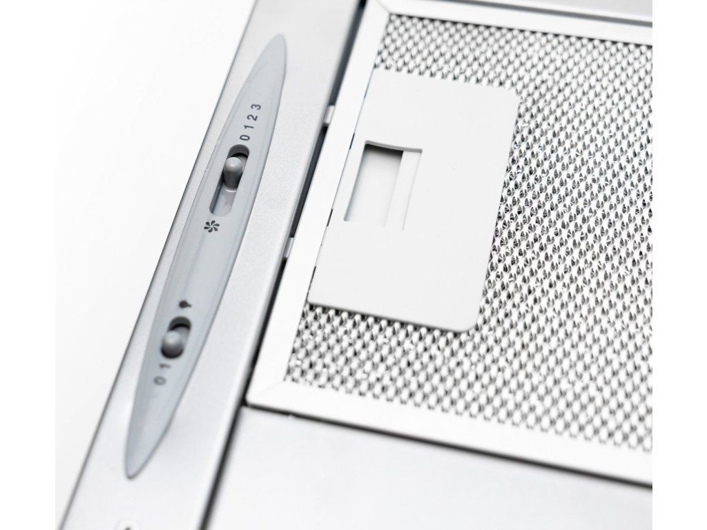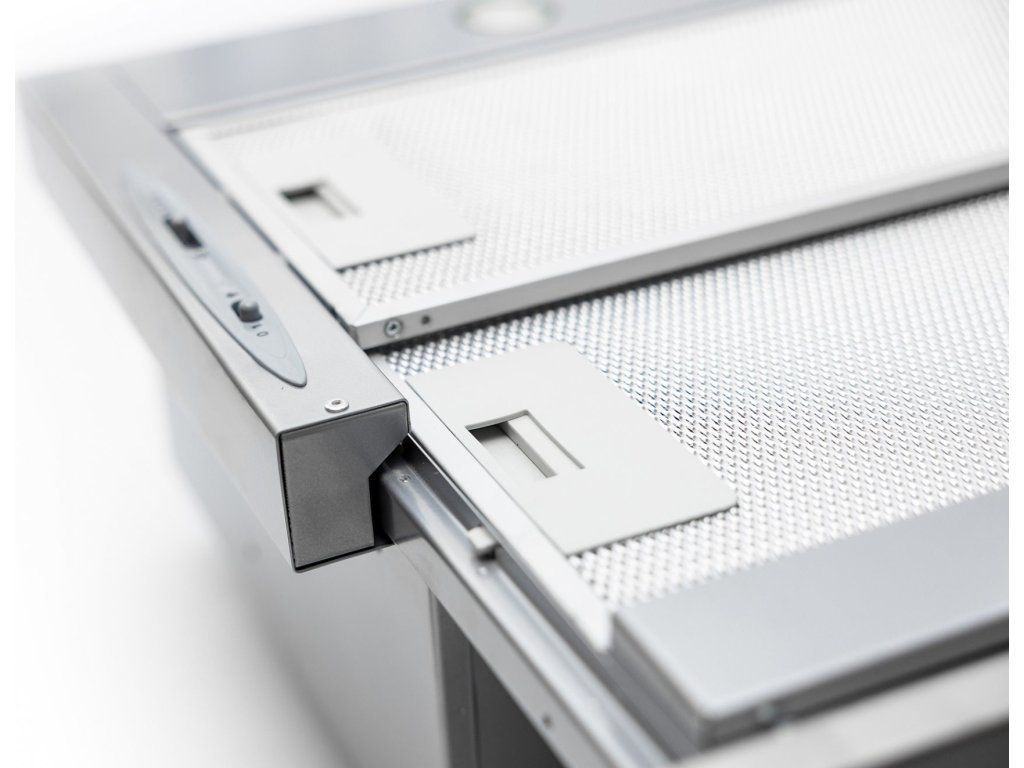 Vestavná digestoř výsuvná, šíře 60 cm, šedá s nerez lištou, max. výkon 266 m3/h (15 Pa), hlučnost Lw 54 – 62 dB(A), 3 rychlosti, odsávací jednotky mají individuálně vyvažovanou turbínu, motory jsou opatřené vratnými tepelnými pojistkami (při přetížení motoru vypne, po jeho vychladnutí opět sepne), mechanické posuvné ovládání, kovové sendvičové tukové filtry, které lze mýt v myčce, možnost práce v odtahovém i recirkulačním režimu, Výbava: úsporné LED osvětlení 2 × 2 W, zdarma zpětná klapka Recirkulační režim u vestavných digestoří: Digestoř se osadí uhlíkovým pachovým filtrem. Přefiltrovaný vzduch se z digestoře odvádí obdobně jako u odtahového režimu trubkou, která prochází celou skříňkou. Tato trubka však neústí kolenem do zdi, ale nad skříňku, kde ji doporučujeme zakončit mřížkou. Pro výrobu skříňky je směrodatný rozměrový nákres a údaje v něm uvedené. Fotografie digestoří jsou ilustrační.