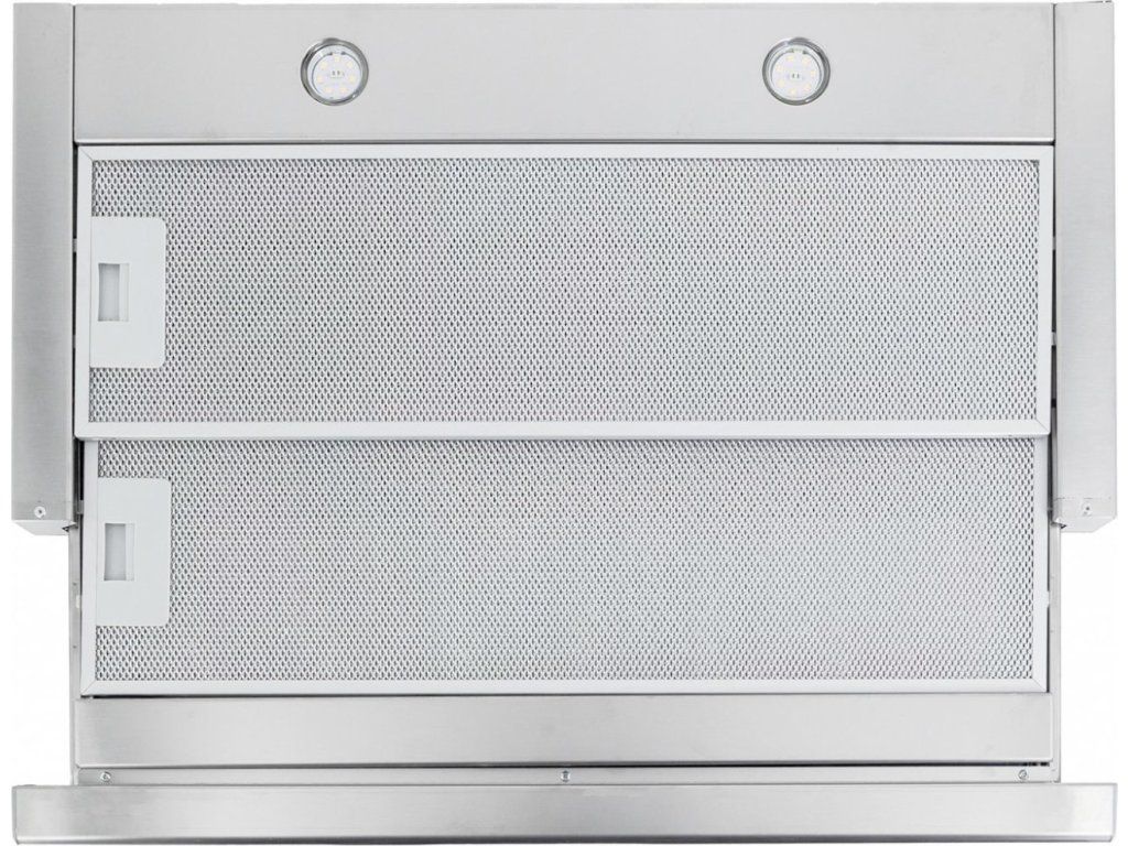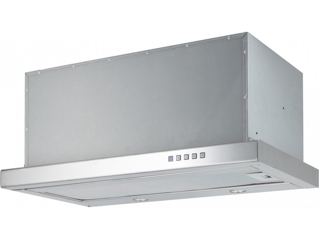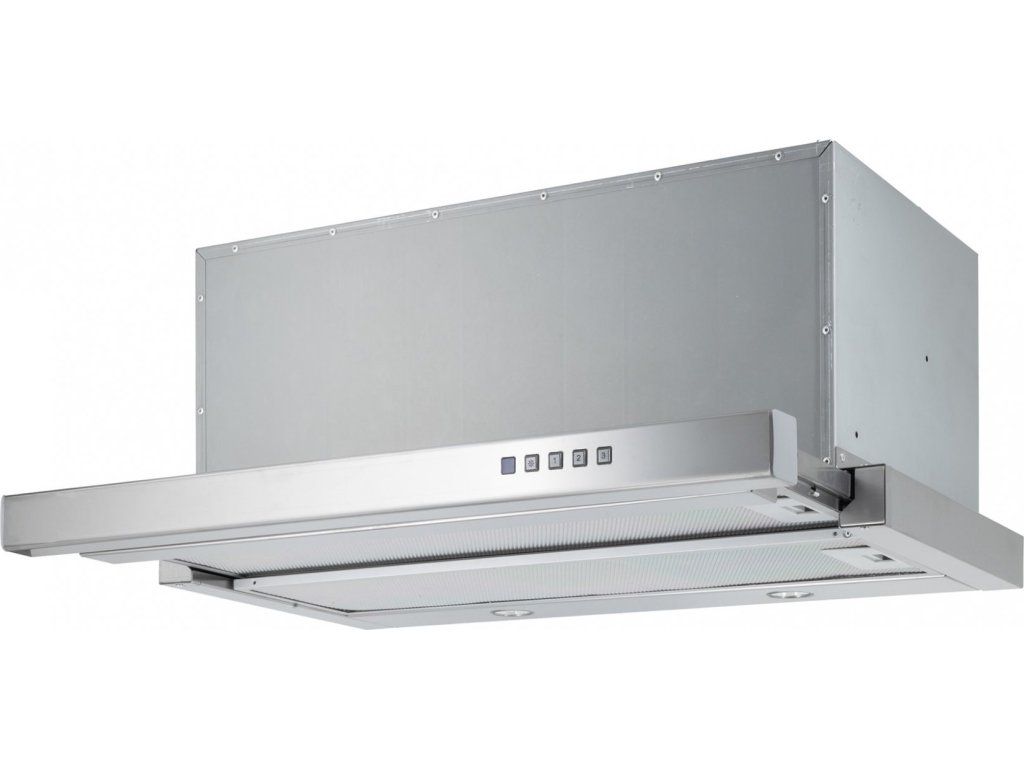 Vestavná digestoř výsuvná, šíře 50 cm, nerez s nerez lištou (šedý korpus), max. výkon 692 m3/h (5 Pa), hlučnost Lw 50 – 70 dB(A), 3 rychlosti, odsávací jednotky mají individuálně vyvažovanou turbínu, motory jsou opatřené vratnými tepelnými pojistkami (při přetížení motoru vypne, po jeho vychladnutí opět sepne), kovové sendvičové tukové filtry, které lze mýt v myčce, možnost práce v odtahovém i recirkulačním režimu, Výbava: úsporné LED osvětlení 2 × 2 W, elektronické ovládání s doběhovým časovačem, zdarma dálkový ovladač i s bateriemi, zdarma redukce na 120 mm a zpětná klapka, Benefity: používání dálkového ovládání usnadňuje údržbu digestoře (méně otisků na digestoři = snazší čištění), ovladač je opatřený magnetem, lze jej přichytit třeba na dveře lednice (může být snadno po ruce, nikam nezapadne) Recirkulační režim u vestavných digestoří: Digestoř se osadí uhlíkovým pachovým filtrem. Přefiltrovaný vzduch se z digestoře odvádí obdobně jako u odtahového režimu trubkou, která prochází celou skříňkou. Tato trubka však neústí kolenem do zdi, ale nad skříňku, kde ji doporučujeme zakončit mřížkou. Pro výrobu skříňky je směrodatný rozměrový nákres a údaje v něm uvedené. Fotografie digestoří jsou ilustrační.