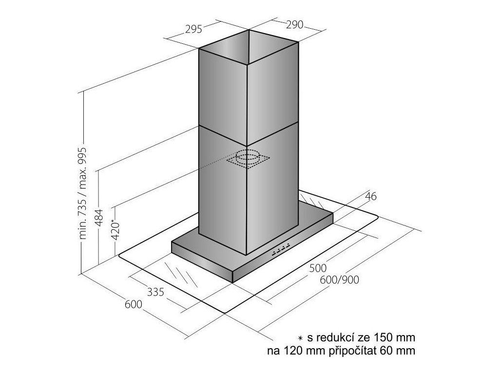 | Průměr odtahu: | 150, zdarma redukce 150 / 120 |