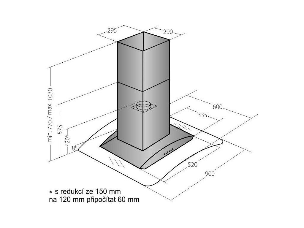 | Průměr odtahu: | 150, zdarma redukce 150 / 120 |