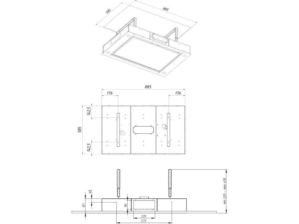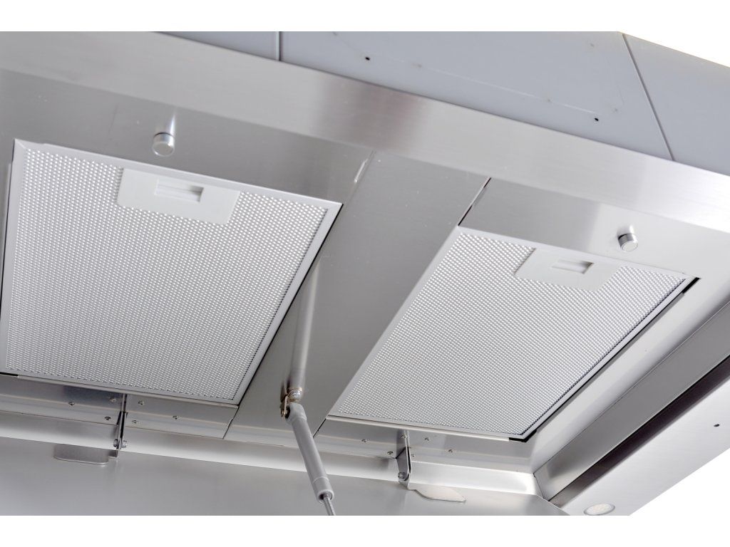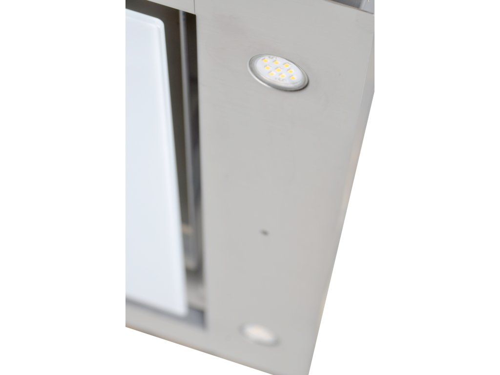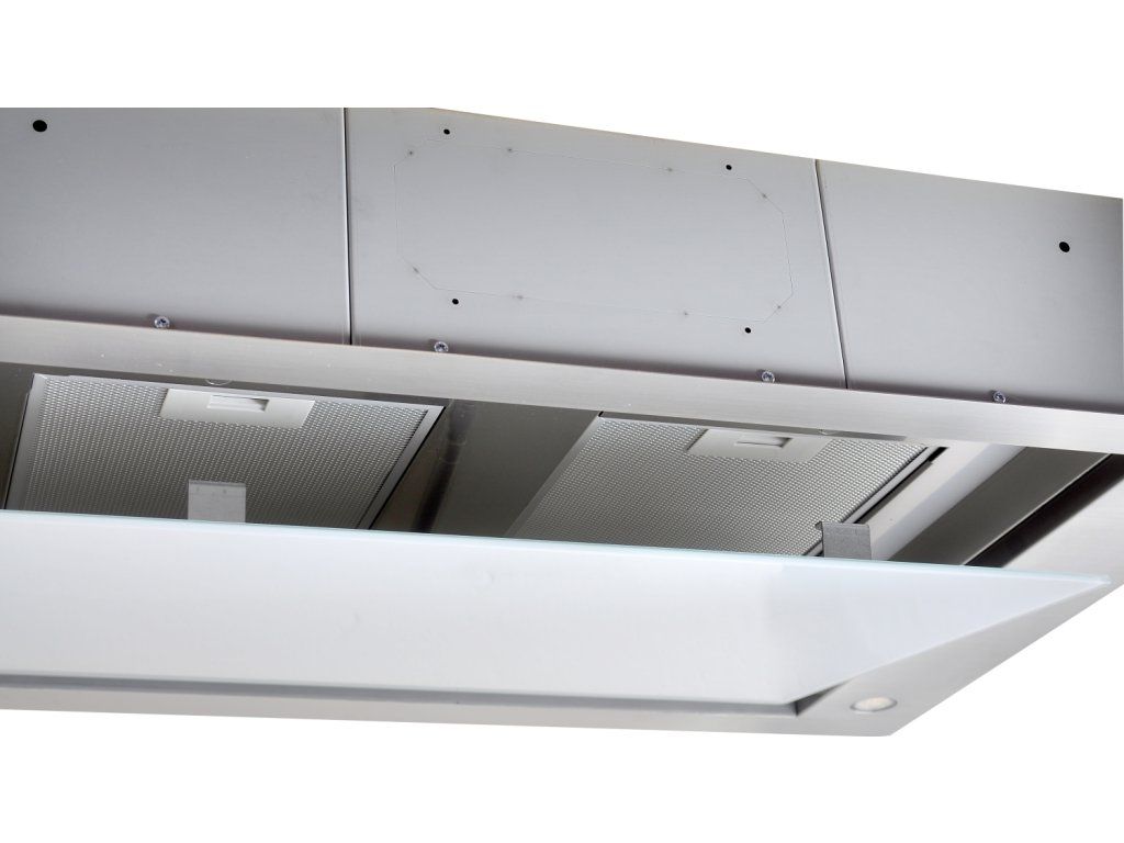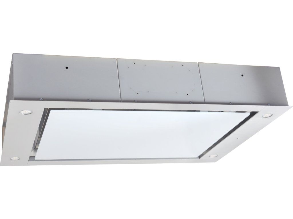 Stropní digestoř s externím motorem, šíře 90 cm, nerez / bílé sklo, max. výkon 822 m3/h (5 Pa), hlučnost Lw 51 – 69 dB(A), 3 rychlosti + TURBO, odsávací jednotky mají individuálně vyvažovanou turbínu, motory jsou opatřené vratnými tepelnými pojistkami (při přetížení motoru vypne, po jeho vychladnutí opět sepne), kovové sendvičové tukové filtry, které lze mýt v myčce, výstupní průměr 150 mm, možnost práce pouze v odtahovém režimu, VIP výbava: úsporné LED osvětlení 4 × 2 W, elektronické dálkové ovládání, zdarma dálkový ovladač i s bateriemi, zdarma přiloženy montážní konzole, výdechové hrdlo a propojovací kabel 10 m, Benefity: stropní digestoř je skrytá ve stropním podhledu a dává tak vyniknout ostatnímu vybavení kuchyně, externí motor lze umístit i mimo kuchyň a snížit tak provozní hlučnost