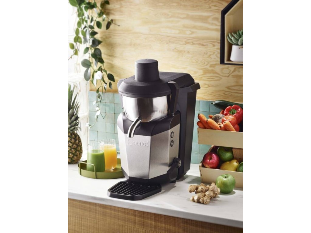 Profesionální elektrický odšťavňovač N 50 od francouzského výrobce SANTOS je vybaven samočistícím košem, který zajišťuje výrazně vyšší výtěžnost šťávy a méně odpadu. Díky tomu zůstává strouhací kotouč méně zanesený, což znamená stabilní výkon, čistčí provoz a výrazně jednodušší čištění i při intenzivním používání. Ideální řešení pro profesionální provozy, kde se počítá každá kapka i každá minuta.