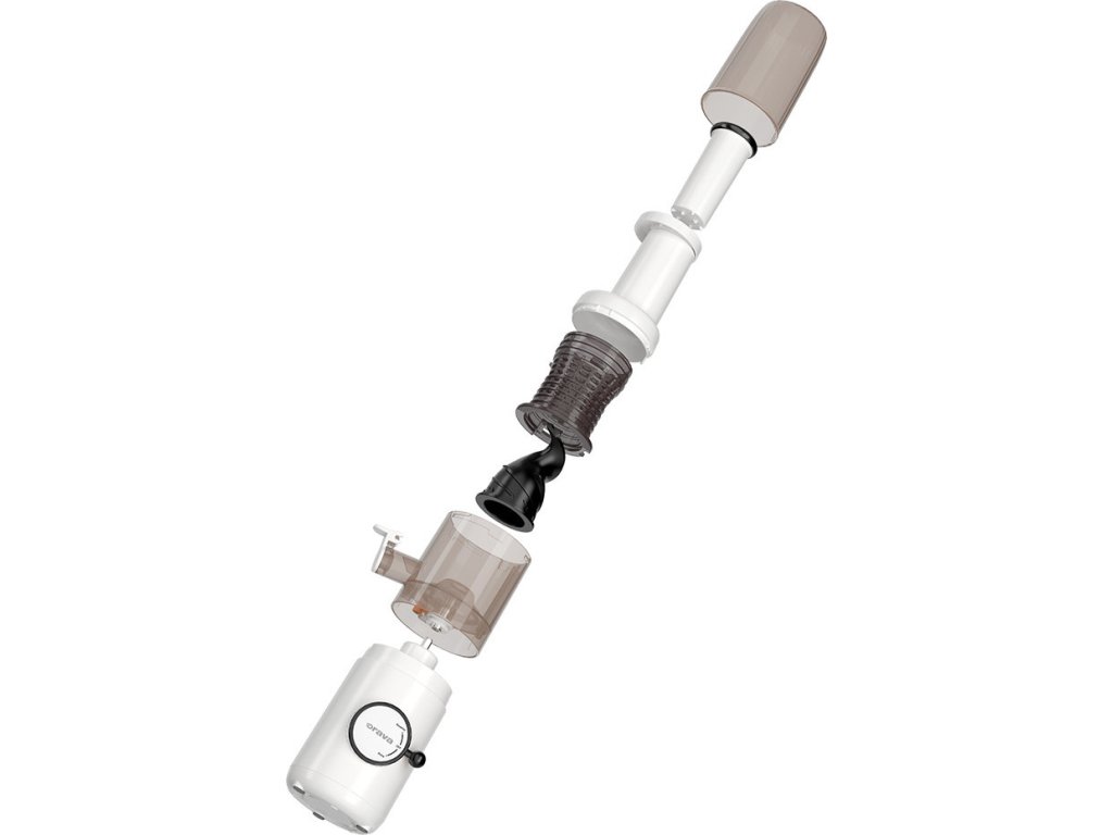 Nízkootáčkový závitkový odšťavňovač. Jedinečný a precizní způsob odšťavňování umožní získat maximum nutričních hodnot, vitamínů, chuti ovoce a zeleniny. Větší výtěžnost šťávy z ovoce nebo zeleniny oproti běžným odšťavňovačům. Tichý chod motoru, snadná obsluha a čištění. Reverzní chod motoru brání ucpání a dovolí zpracovávat větší dávky bez potřeby čištění. Napájení: 220 - 240 V ~ 50/60 Hz, 200 W.
