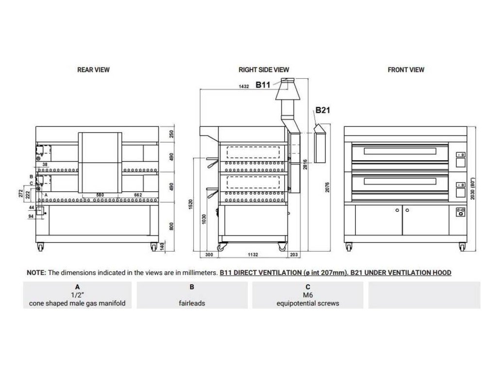- modulová pec na pizzu se skládá ze dvou pečicích komor s kynárnou a digestoří