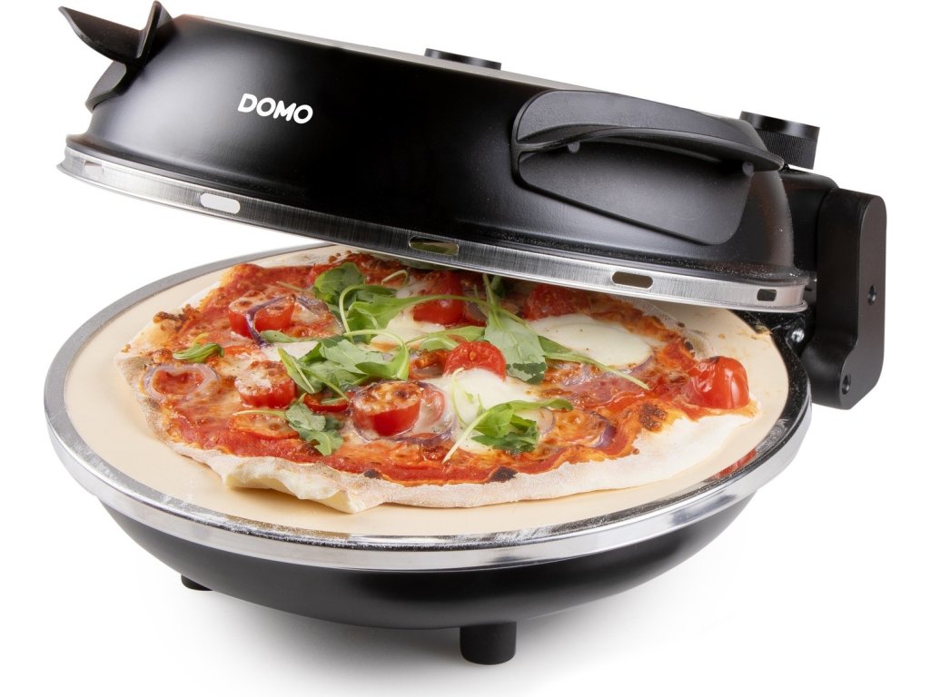 Pizza pec na čerstvou pizzu - černá - DOMO DO9285PZ, 1 200 W, až 400 °C, Ø 32 cm, žáruvzdorný keramický kámen