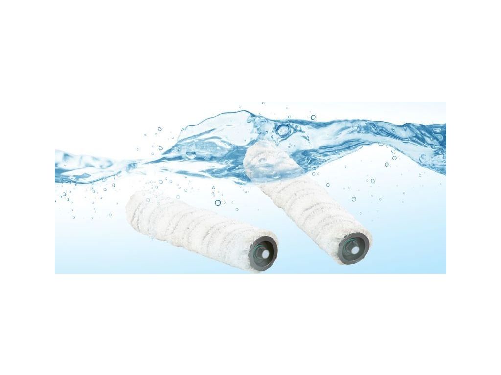 - Vytírání systémem dvou protiběžných válců z mikrovlákna: