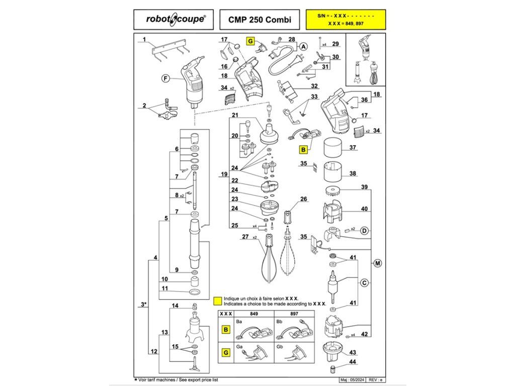 Robot Coupe CMP 250 Combi NÁHRADNÍ NOHA MIXERU KOMPLET VČ. ZVONU HŘÍDELE