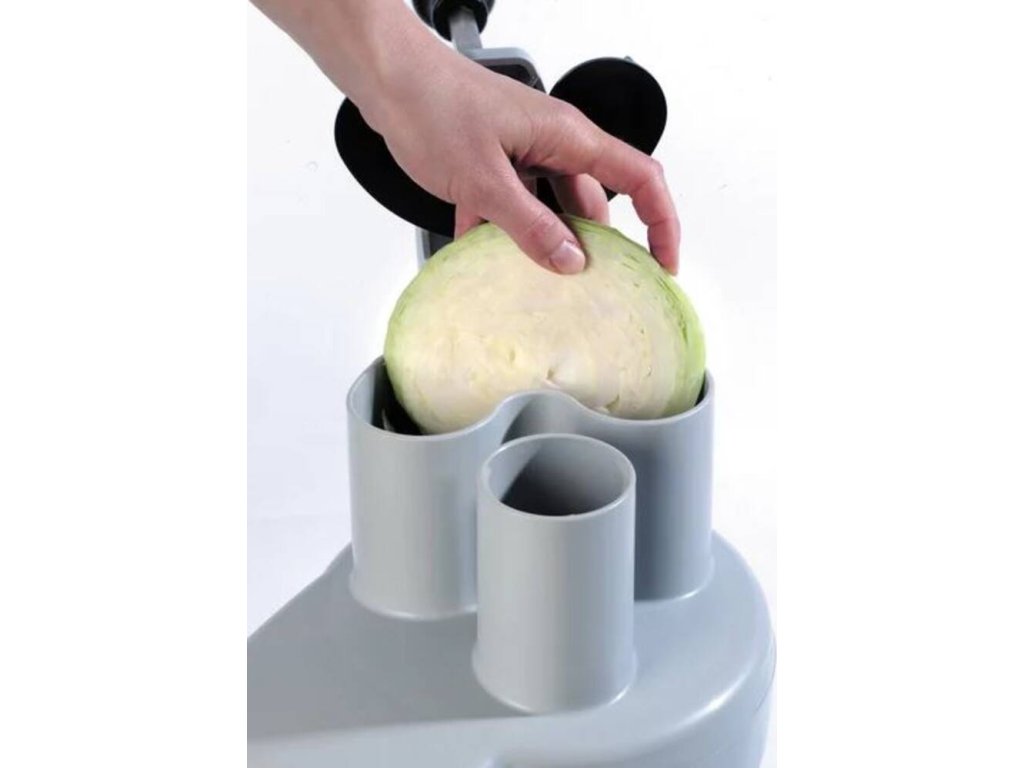 - 1× velký otvor ve tvaru ledvinky o ploše 104 cm2 – objem násypky 1,56 l – určen ke krouhání větších kusů zeleniny – jako je zelí, cibule nebo rajčata