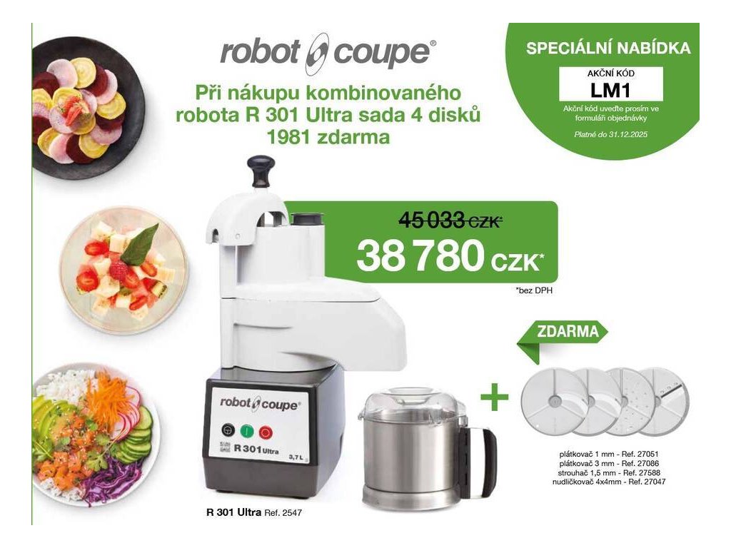 Kombinovaný robot R 301 ULTRA od francouzského výrobce ROBOT COUPE.