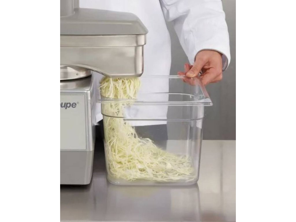 - 1× velký otvor ve tvaru ledvinky o ploše 104 cm2 – objem násypky 1,6 l – určen ke krouhání větších kusů zeleniny – jako je zelí, cibule nebo rajčata