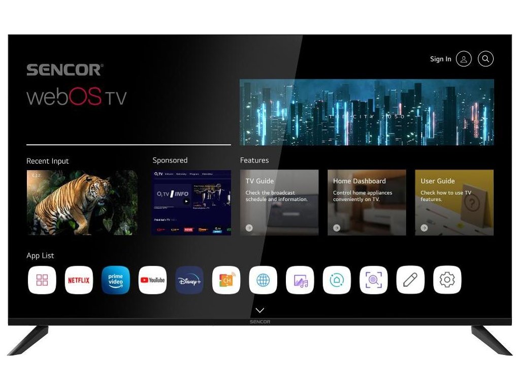 Systém WebOS, zkušenostmi ověřený operační systém vyvinutý společností LG, je velice uživatelsky komfortní, svižný a intuitivní. Pokud jde o zastoupení aplikací, ty nejdůležitější v tomto operačním systému nechybí. Rovněž máte přístup do filmoték Netflix či Amazon Prime video a nechybí ani přístup ke službám IPTV poskytovatelů. Systém běží na čtyř jádrovém procesoru ARM Cortex.