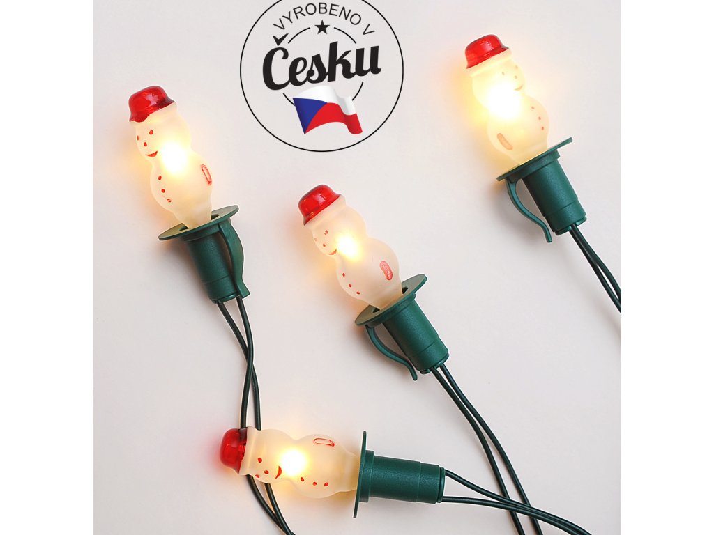 Tradiční osvětlovací souprava se skleněnými žárovkami tvaru SNĚHULÁK.