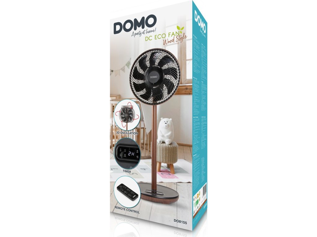 Stojanový ventilátor s 3D oscilací - Wood Style - DOMO DO8155, 33 cm, dálkové ovládání