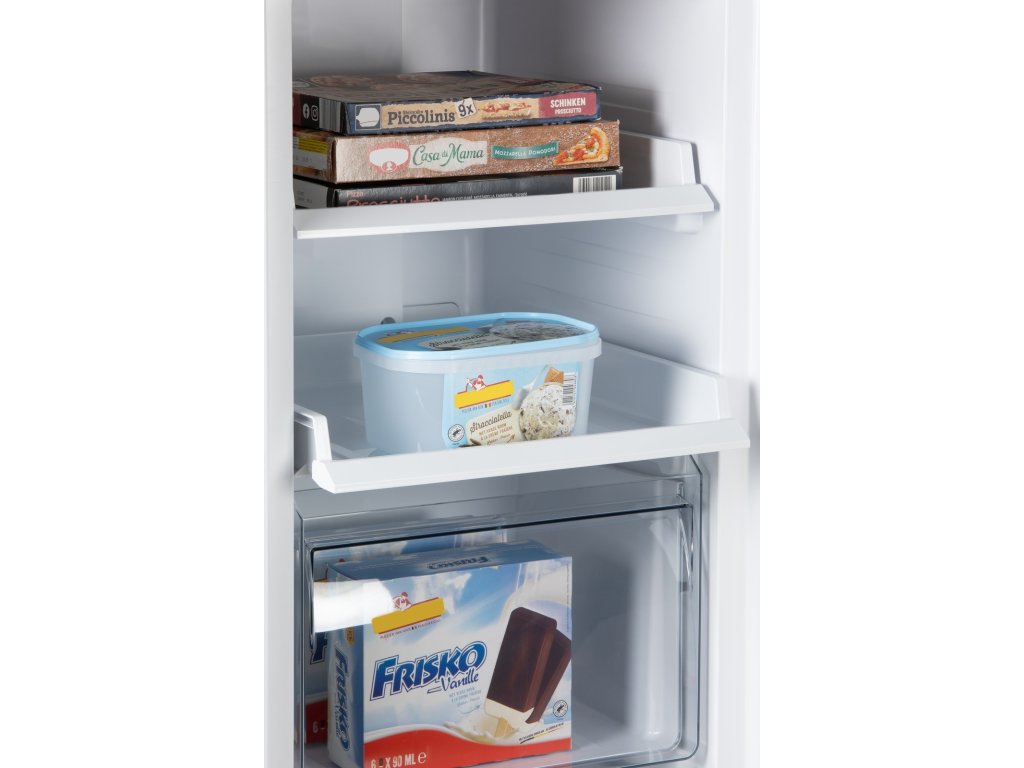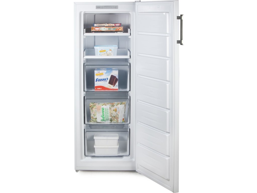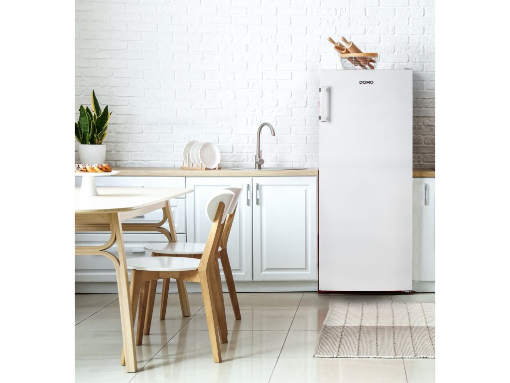 Šuplíkový mrazák DOMO DO91203F je volně stojící mrazák s objem 161 litrů. Díky nízké hlučnosti 39 db, ho můžete postavit kamkoli a nehrozí že vás bude rušit. Vnitřní prostor je rozdělen do 5 částí (3 objemné transparentní zásuvky a 2 horní pozice jsou volně přístupné). Mraznička DO91203F spadá do energetické třídy C s roční spotřebou kolem 132 kWh. Dokonalý No Frost systém se stará o neustálou cirkulaci vzduchu, a tím minimalizuje vnitřní námrazu