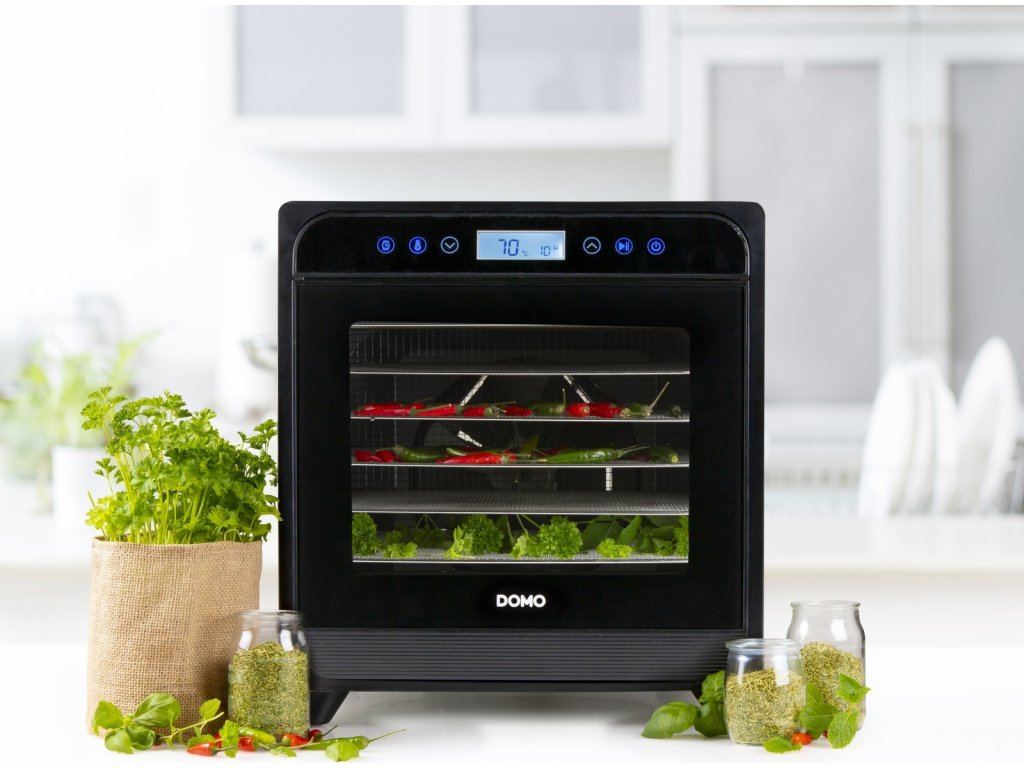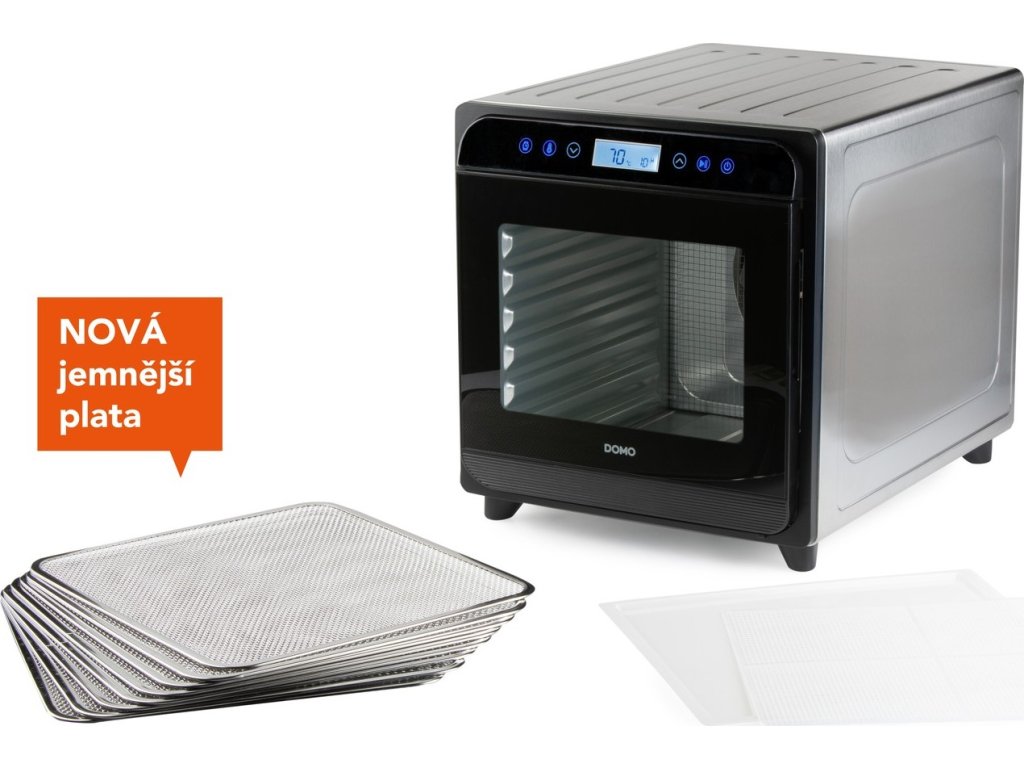 Zvýšený příkon a rozsah nastavení teploty sušení umožňuje v sušičce efektivně sušit bylinky, ovoce s vysokým podílem vody, maso, nebo na speciálním platu bez otvorů i ovocné placky.