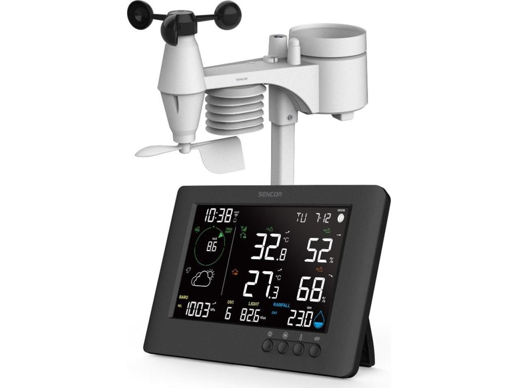 Profesionální meteorologická stanice SENCOR SWS 10500 Wi-Fi je ideální volbou pro každého, kdo chce mít přehled o počasí s profesionální přesností. Přiložený bezdrátový senzor 7v1 je vybaven švýcarskými čidly SENSIRION a měří teplotu, barometrický tlak, vlhkost, rychlost a směr větru, intenzitu srážek, UV index, a dokonce i intenzitu světla. Díky Wi-Fi připojení se data automaticky odesílají na platformy Weather Underground a Weathercloud. Můžete tak naměřené hodnoty sledovat odkudkoli prostřednictvím vašich chytrých zařízení včetně telefonu, tabletu nebo počítače. Podporovány jsou mobilní platformy iOS i Android.