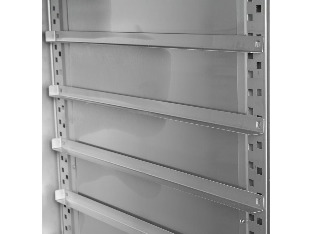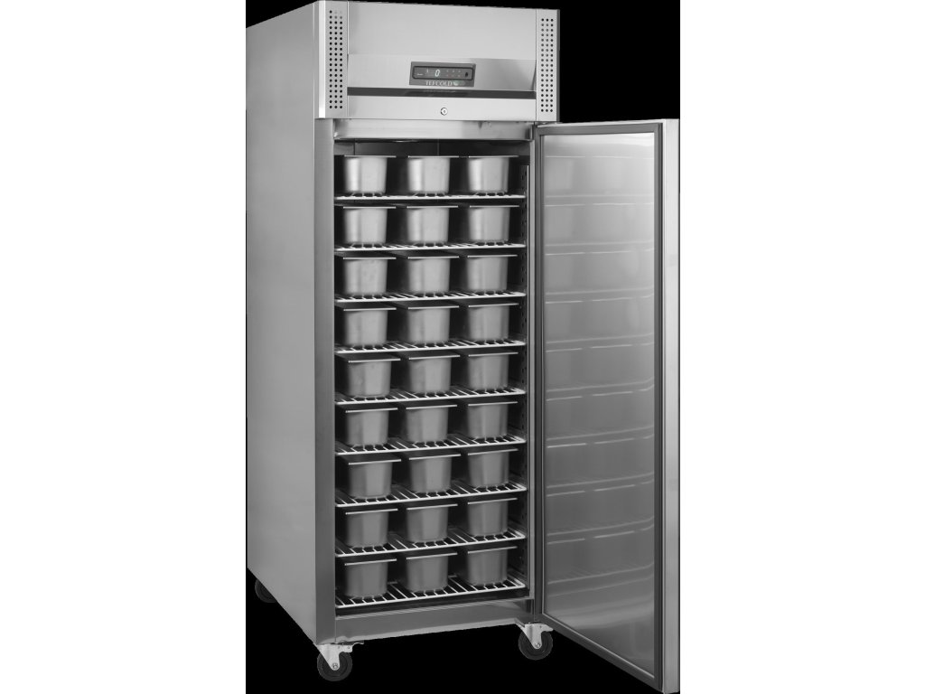 Řada mrazicích skříní BF je navržena s rozměry Euronorm a má 9 vodicích lišt pro pekařské plechy o rozměrech 600 × 400 nebo 600 x 800 mm, což usnadňuje organizaci a přístup. Tento konkrétní model je navíc vybaven policemi, které pojmou až 54 GN na zmrzlinu 360x165x120 mm o objemu 5 l, čímž se rozšiřuje jeho všestrannost.rozměry podle evropské normy|9 drátěné police (600 x 800 mm)|pojme 54 x 5l gastronádoby (gastronádoby nejsou součástí balení)|samozavírací dveře, lze měnit otevírání|nerezová ocel 304|vnitřní LED osvětlení|ventilované chlazení|odolná kolečka|zámek