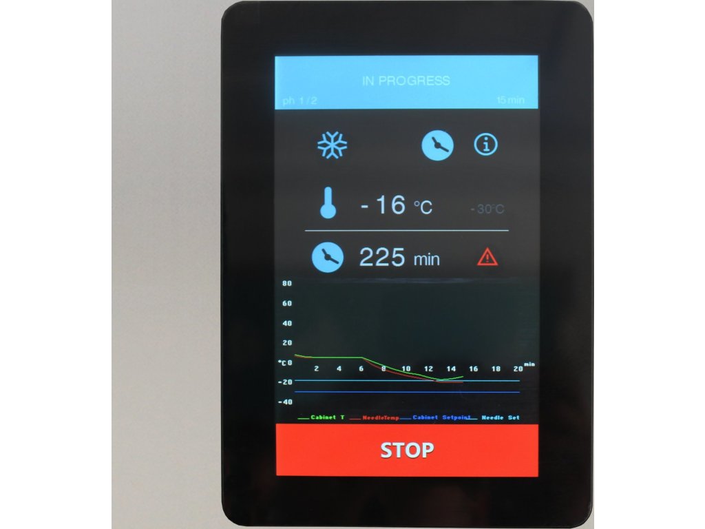 Řada šokových zchlazovačů BLCA-X se hojně používá v profesionálních kuchyních, kde je třeba rychle a hygienicky zchladit potraviny. Použití šokerů zachovává barvu, strukturu i chuť potravin. Vyberte si jeden z přednastavených programů nebo si vytvořte vlastní. Všechny modely jsou vyrobeny z vysoce kvalitní nerezové oceli SS304 a dimenzované pro gastronádoby GN 1/1 a Euronorm 40 x 60 cm. Teplotní sonda je součástí balení. Program na výrobu zmrzliny -45 °Covladač s dotykovou obrazovkou|programovatelný termostat|export dat v souladu s HACCP|nahrávání nebo stahování dat přes USB|zásuvy pro gastronádoby GN1/1 a euronorm 600 x 400|nerezová ocel|vpichová sonda součástí balení|samozavírací dveře, lze měnit otevírání|nastavitelné nohy|(chlazení +70 °C až +3 °C) 40 kg za 90 min|(mrazení +70 °C až -18 °C) 28 kg za 240 min