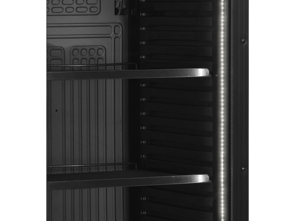 Řada CEV je naší nejprodávanější řadou chladicích zařízení na nápoje. Má vše, co je potřeba pro co nejlepší vystavení ledově vychlazených nápojů: prosklené dveře s LED osvětlením na vnitřní straně rámu dveří, nastavitelné police pro flexibilitu či třeba chlazení s pomocným ventilátorem, díky kterému je v celé skříni rovnoměrná teplota. A navíc je ideální pro prezentaci výrobků.přibližně o 40 % energeticky účinnější než model CEV425 Black|černý interiér a exteriér|elegantní design|vynikající prezentace produktů|nadstandardní prostor na policích|LED osvětlení v rámu dveří|nastavitelné police|chlazení s pomocným ventilátorem|zaměnitelné otevírání dveří (nutno dokoupit příslušenství)|zámek