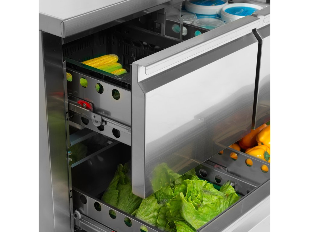 Řada chladicích stolů CK-X z nerezové oceli SS304 je určena pro profesionální kuchyně, a proto má rozměry GN1/1. Stoly jsou k dispozici v několika velikostech a můžete si vybrat mezi modely s horní deskou se zadním lemem nebo bez lemu. Všechny mají ventilované chlazení, které zajišťuje rovnoměrnou a stálou teplotu. Ovladač disponuje funkcí Bluetooth pro snadné monitorování prostřednictvím aplikace - Applica nebo Controlla.nerezová ocel|ventilované chlazení|ovladač s funkcí Bluetooth a konektivitou NFC|export dat v souladu s HACCP|automatické odmrazování|samozavírací dveře|nastavitelné nohy
