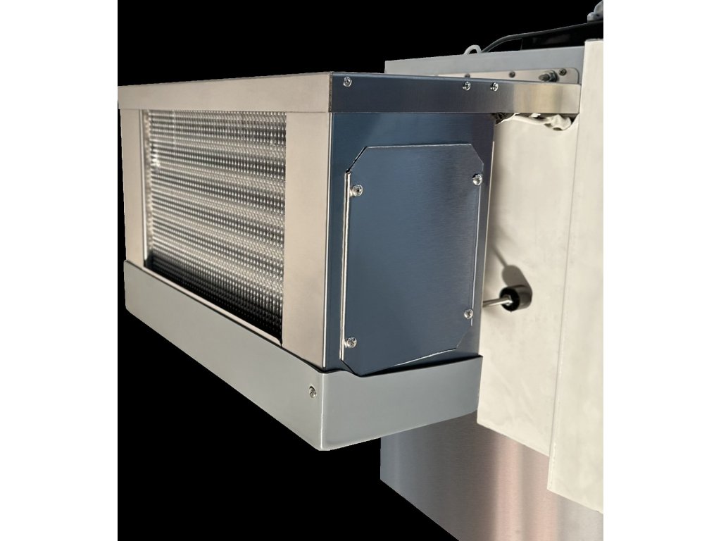 Chladicí bloková jednotka ke stavebnicovému boxu -2 až +8 °C. Součástí jednotky je rohový panel, a proto ji lze instalovat pouze do levého rohu vedle dveří boxu.monobloková chladicí jednotka|automatické odpařování kondenzátu|okolní teplota až +43 °C a 65% vlhkost vzduchu|digitální termostat a teplotní displej|nerezová povrchová úprava