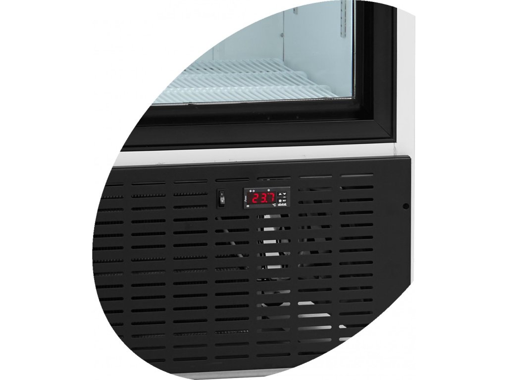 Řada FS dvoudveřových a třídveřových chladicích skříní nabízí vynikající kvalitu provedení za příznivou cenu. Vyberte si mezi vitrínami s bílým nebo černým vnějším povrchem a s černými skleněnými dveřmi s hliníkovým rámem – výklopnými nebo posuvnými. Police jsou nastavitelné, řada FS tak představuje flexibilní řešení. Získáte skvělou prezentaci výrobků v kombinaci s výkonným systémem ventilovaného chlazení řízeným elektronickým termostatem. Mnoho modelů je také k dispozici s reklamním panelem (řada FSC).samozavírací posuvné prosklené dveře|vnitřní svislé LED osvětlení|nastavitelné police|práškově lakované vnitřní obložení|nastavitelné nožky|ventilované chlazení