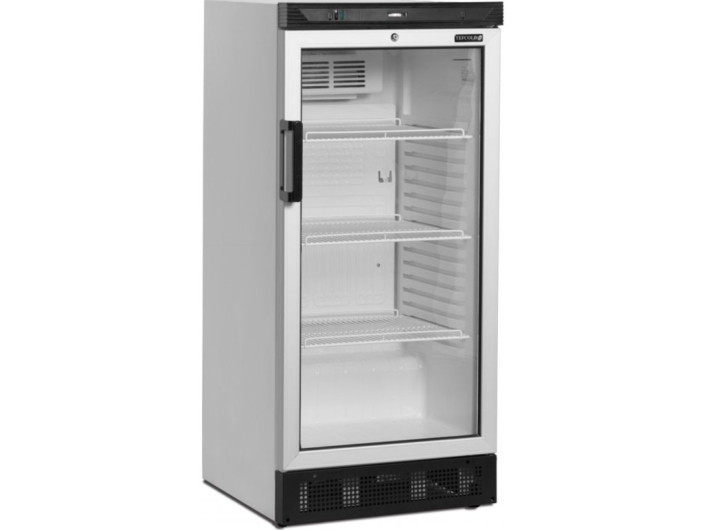 Řada FS jednodveřových chladicích skříní na láhve nabízí vynikající kvalitu provedení za příznivou cenu. Vitrína je bílá se skleněnými dvířky se šedým hliníkovým rámem. Získáte možnost skvělé prezentace produktů v kombinaci s výkonným chladicím systémem s ventilátorem a nastavitelnými policemi umožňujícími flexibilitu.prosklené křídlové dveře s hliníkovým rámem|lze měnit otevírání dveří|nastavitelné police|nastavitelné nožky|vnitřní LED osvětlení|chlazení s pomocným ventilátorem