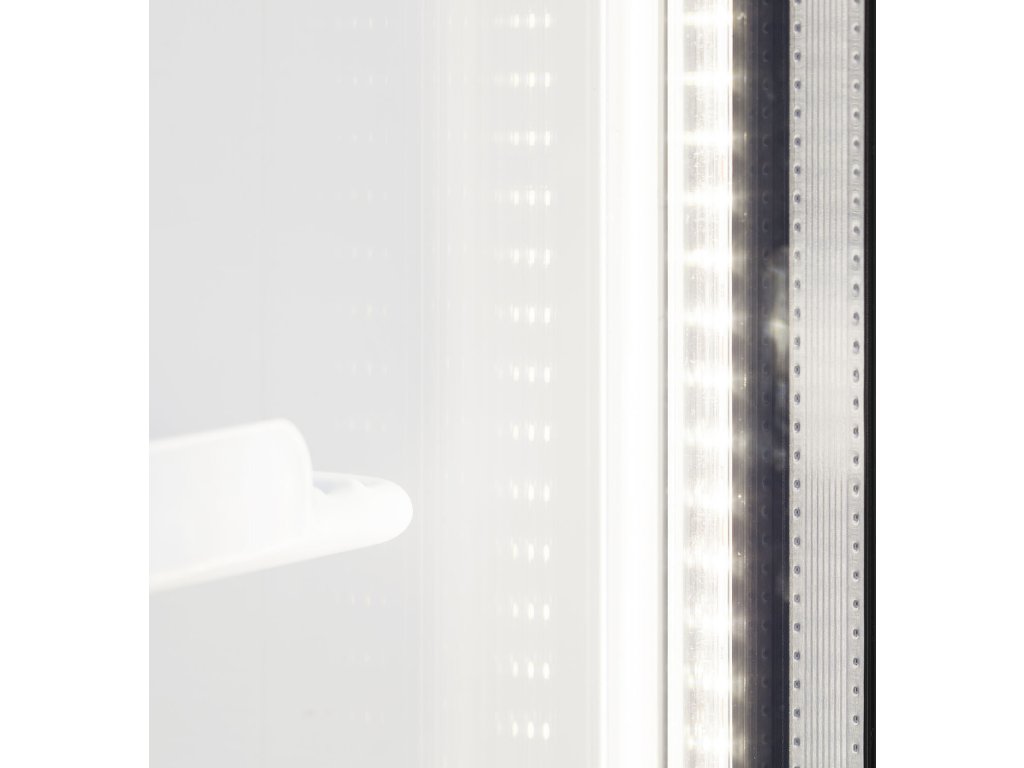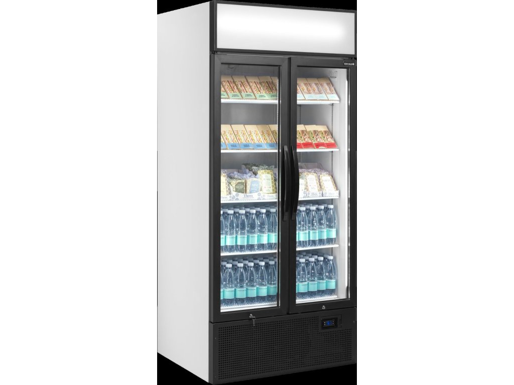 Řada TEFCOLD FSC dvoudveřových a třídveřových chladicích skříní s osvětleným reklamním panelem nabízí vysokou kvalitu provedení za příznivou cenu. Vyberte si mezi chladicími skříněmi v bílém nebo černém provedení s černými prosklenými dveřmi s hliníkovým rámem. Dveře máme v nabídce křídlové (H) nebo posuvné (S). Police jsou nastavitelné, řada FSC tak představuje flexibilní řešení pro prezentaci vašeho prodávaného zboží. Mnoho modelů je k dispozici také bez reklamního panelu (řada FS).cca o 58 % energeticky účinnější než předchozí řada FSC|samozavírací výklopné prosklenédveře s hliníkovým rámem|reklamní panel s LED osvětlením|vnitřní svislé LED osvětlení|nastavitelné police|nastavitelné nožky s pojezdovými válečky vzadu|ventilované chlazení