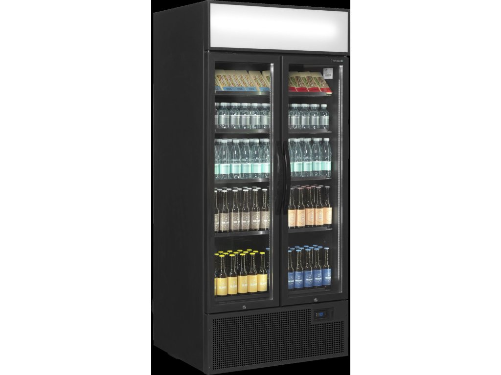 Řada TEFCOLD FSC dvoudveřových a třídveřových chladicích skříní s osvětleným reklamním panelem nabízí vysokou kvalitu provedení za příznivou cenu. Vyberte si mezi chladicími skříněmi v bílém nebo černém provedení s černými prosklenými dveřmi s hliníkovým rámem. Dveře máme v nabídce křídlové (H) nebo posuvné (S). Police jsou nastavitelné, řada FSC tak představuje flexibilní řešení pro prezentaci vašeho prodávaného zboží. Mnoho modelů je k dispozici také bez reklamního panelu (řada FS).cca o 58 % energeticky účinnější než předchozí řada FSC|reklamní panel s LED osvětlením|vnitřní svislé LED osvětlení|černý interiér a exteriér|nastavitelné police|ventilované chlazení|prosklené křídlové dveře s hliníkovým rámem|nastavitelné nožky s pojezdovými válečky vzadu|digitální ukazatel teploty