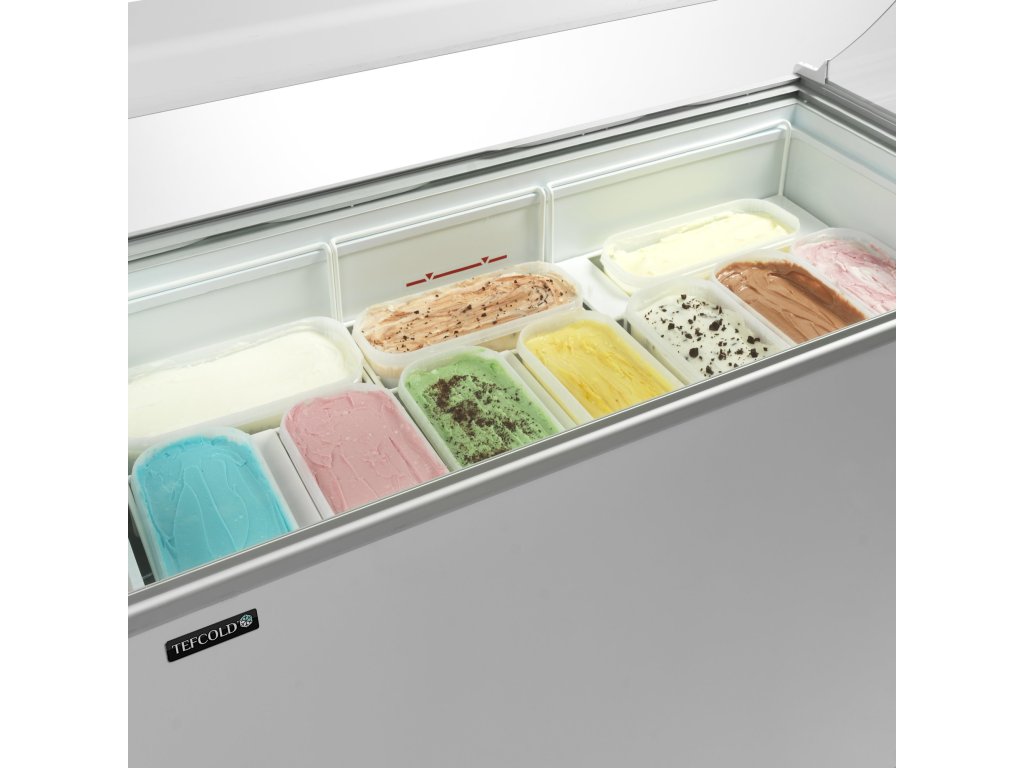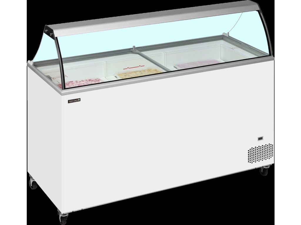 Řada distributorů zmrzliny IC SC SO nabízí skvělou kvalitu za výhodnou cenu. Tyto distributory mají rovná posuvná víka, která chrání prostor se zmrzlinou před únikem chladu, která jsou navíc opatřena zámkem. Ochraný kryt má oblíbený oblý tvar a díky svému jednoduchému designu je distributor ideální pro reklamní polep. Všechny modely této řady jsou optimalizovány pro koše, které pojmou 5l vaničky na zmrzlinu. Koše nejsou součástí, typ a počet je nutné objednat zvlášť. Distributor zmrzliny se skládá ze dvou částí (mraznička + skleněná nástavba), které se mohou na faktuře objevit jako samostatné položky.přední oblé sklo|rovná posuvná prosklená víka se zámkem|úložný prostor pod koši|ideální pro reklamní polep|digitální teploměr|kolečka s brzdou|klimatická třída 5 - vysoký výkon i v teplém prostředí|Na objednávku: koše vhodné pro GN na zmrzlinu|tento model pojme dvanáct 5l vaniček
