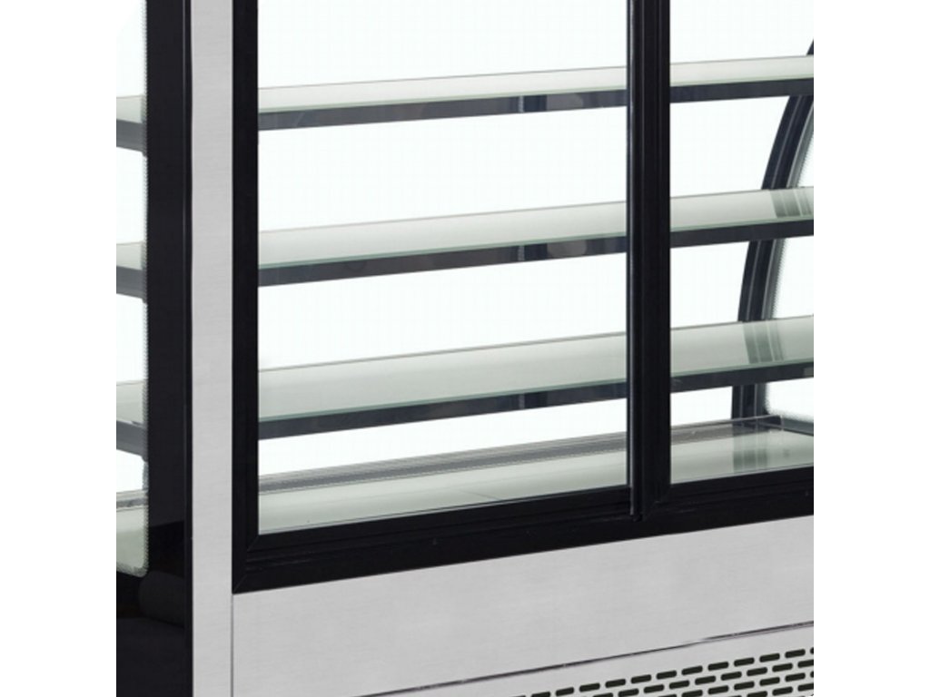 Cukrářské chladicí vitríny TEFCOLD LPD jsou díky svému modernímu designu skvělou volbou pro vystavení cukrářských a lahůdkářských produktů. Díky LED osvětlení ze spodní strany každé police je zboží krásně nasvětleno a láká zákazníky k ochutnání. Police jsou nastavitelné a je tak možné přizpůsobit jejich výšku nárokům každé cukrárny či kavárny, jelikož je zde dostatek místa i pro vyšší dorty.rám z nerezové oceli a lesklého černého skla|LED osvětlení pod každou policí|nastavitelné police (jeden krok)|zadní prosklené posuvné dveře|nastavitelné nožky a kolečka|oblé předné sklo|dvojité sklo|přední sklo s ochranou proti mlžení