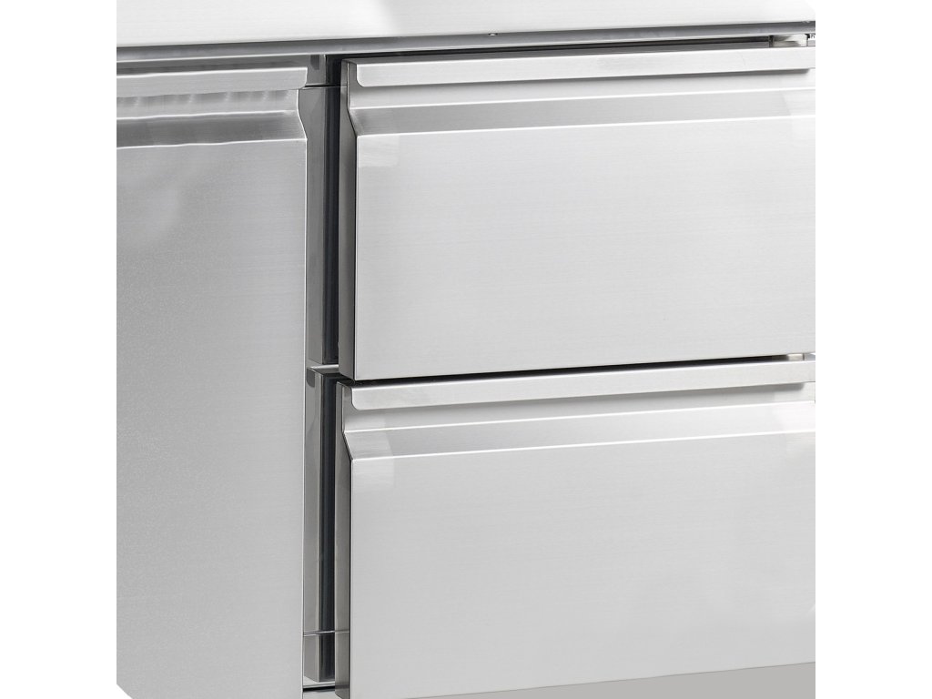 Řada PT chladicích pizza stolů je vyrobena z nerezové oceli SS304. Má žulovou desku, která je pro přípravu pizzy ideální, protože žula zůstává chladná a těsto se na ni méně lepí. Stoly jsou k dispozici v několika velikostech se 2 nebo 3 dvířky. Také je možné pořídit si přizpůsobenou variantu se zásuvkami. Dodává se s horní jednotkou pro gastronádoby GN nebo bez ní – horní jednotku lze dodatečně namontovat.nerezová ocel|žulová pracovní deska|automatické odmrazování|dveře|nastavitelné nožky|chlazení s pomocným ventilátorem