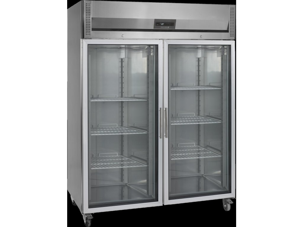 Řada chladicích skříní skříní RK-G s 1 nebo 2 prosklenými dveřmi je určena pro profesionální kuchyně a má nastavitelné police s rozměry GN2/1. Chladicí skříň je vyrobena z vysoce kvalitní nerezové oceli SS304 vhodné pro gastronomii a má odolná kolečka pro snadné přemísťování, což se hodí při čištění kuchyně. Ventilované chlazení zajišťuje rovnoměrnou teplotu v každém místě skříně, teplotu lze nastavit na digitálním termostatu. Skříně jsou k dispozici také s plnými dveřmi.nerezový exteriér a interiér|ventilované chlazení|zámek|nastavitelné police GN 2/1|odolná kolečka|samozavírací dveře se 105° zarážkou