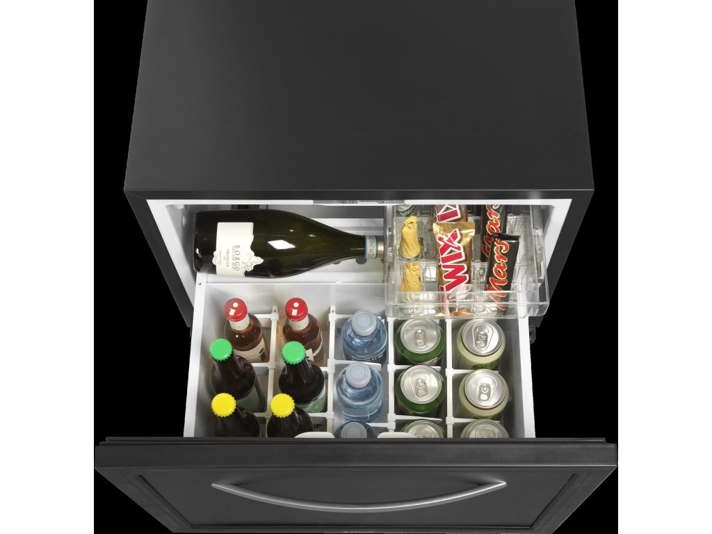 Minibary se zásuvkami řady TD se skvěle hodí do hotelových pokojů. Minibar můžete vložit například do nočního stolku, a nabídnout tak svým hostům snadný přístup ke studeným nápojům a občerstvení. Minibary jsou vybaveny tichým kompresorovým systémem. Mají elegantní design, lze je snadno zabudovat a mají nízkou spotřebu energie.kompresorový chladicí systém|nízká spotřeba energie|provoz s nízkou hlučností|režim SLEEP-mode pro extra tichý chod při spaní|vynikající prezentace produktů|vnitřní LED osvětlení