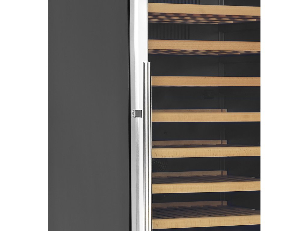 Vinotéky řady TFW-2S s prvky z nerezové oceli nabízejí moderní řešení pro vystavování a skladování lahví s vínem. Má elegantní design s přední stranou z nerezové oceli a černým interiérem, jemné LED osvětlení a výsuvné dřevěné police. Vinotéka je vybavena moderním chladicím systémem, který umožňuje nastavení dvou rozdílných teplot. Agregát disponuje nízkou hlučností a spotřebou elektrické energie.nerezový dveřní rám a rukojeť|2 teplotní zóny s maximální odchylkou 10 °C|energeticky úsporný chladicí systém|velmi nízká hlučnost|vnitřní LED osvětlení s vypínačem|prosklené dveře, lze měnit otevírání|dřevěné police|poplach vysoké/nízké teploty|police pro prezentaci zboží jako příslušenství