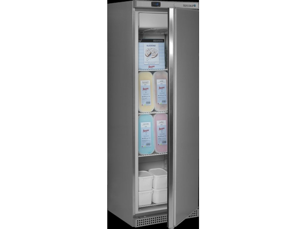 Řada mrazicích skříní UF-VS je verzí našich nerezových mrazicích skříní s ventilovaným chlazením. Dodává se v různých velikostech. Mrazicí skříň má účinný ventilační chladicí systém, který zajišťuje rovnoměrnou teplotu v celé skříni. Teplotu nastavíte na snadno ovladatelném digitálním displeji termostatu. Mrazničku si můžete přizpůsobit svým potřebám díky nastavitelným policím. Odmrazování probíhá automaticky.nerezové provedení|integrované madlo|plné dveře, lze měnit otevírání|elektronický termostat |automatické odmrazování|nastavitelné police|ventilované chlazení|zámek|nastavitelné nožky s pojezdovými válečky vzadu