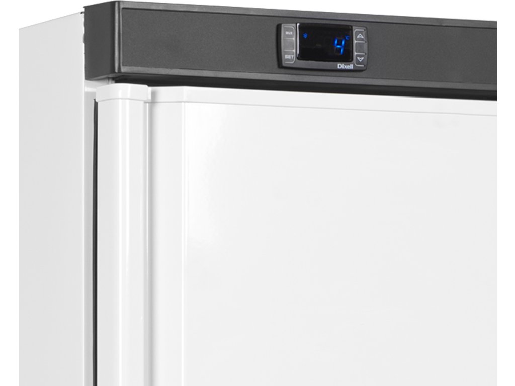 Řada chladicích skříní UR nabízí vysokou kvalitu a spolehlivost v čistém designu s integrovanou rukojetí. Chlazení s ventilátorem zajišťuje stabilní teplotu v celé skříni, kterou lze snadno regulovat pomocí elektronického termostatu. Dodává se v různých velikostech s nastavitelnými policemi, takže interiér snadno přizpůsobíte svým potřebám.integrované madlo|plné dveře, lze měnit otevírání|elektronický termostat |chlazení s pomocným ventilátorem|nastavitelné police|zámek|digitální termostat a teplotní displej|nastavitelné nožky s pojezdovými válečky vzadu