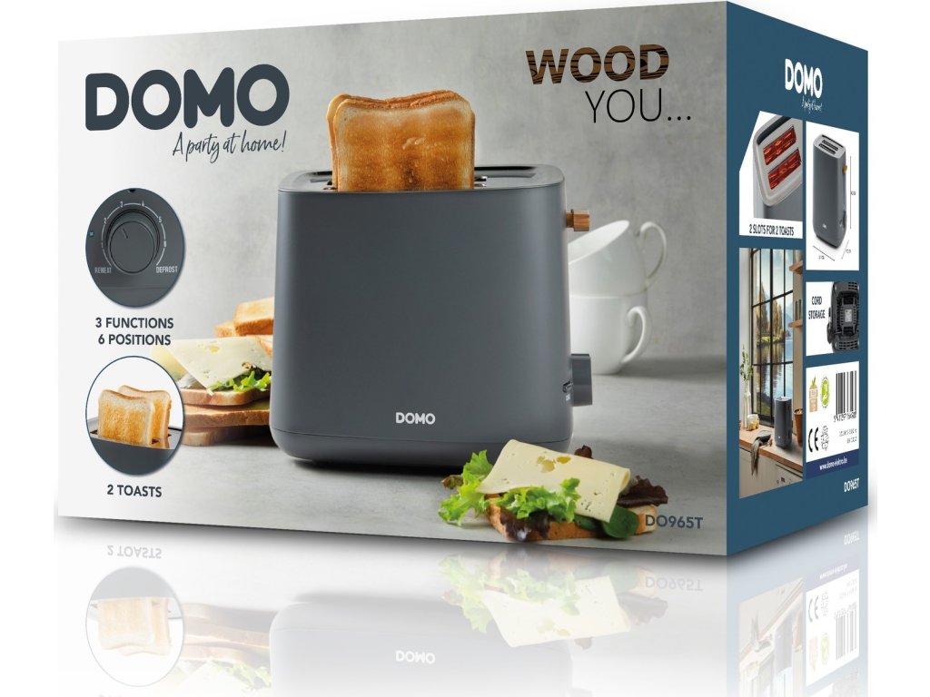 Topinkovač na 2 topinky - šedý - WOOD YOU - DOMO DO965T, 1 000 W