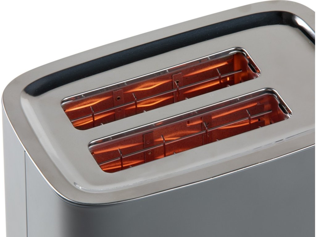 Topinkovač na 2 tousty s automatickým vycentrováním pečiva, tak aby se dosáhlo rovnoměrného opečení. Uživatel ocení pevné plechové tělo stříkané do matné šedé barvy a 1 000 W. Vybrat si můžete ze 6 stupňů opečení, což je regulováno nastaveným časem.
