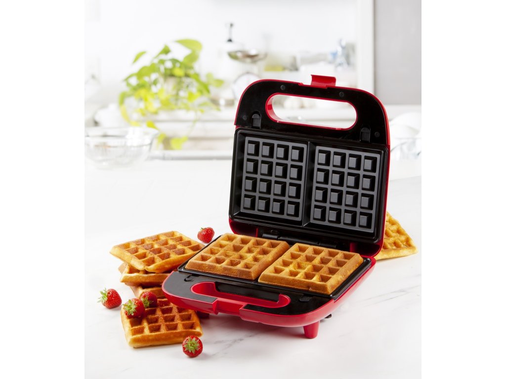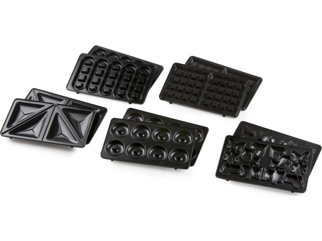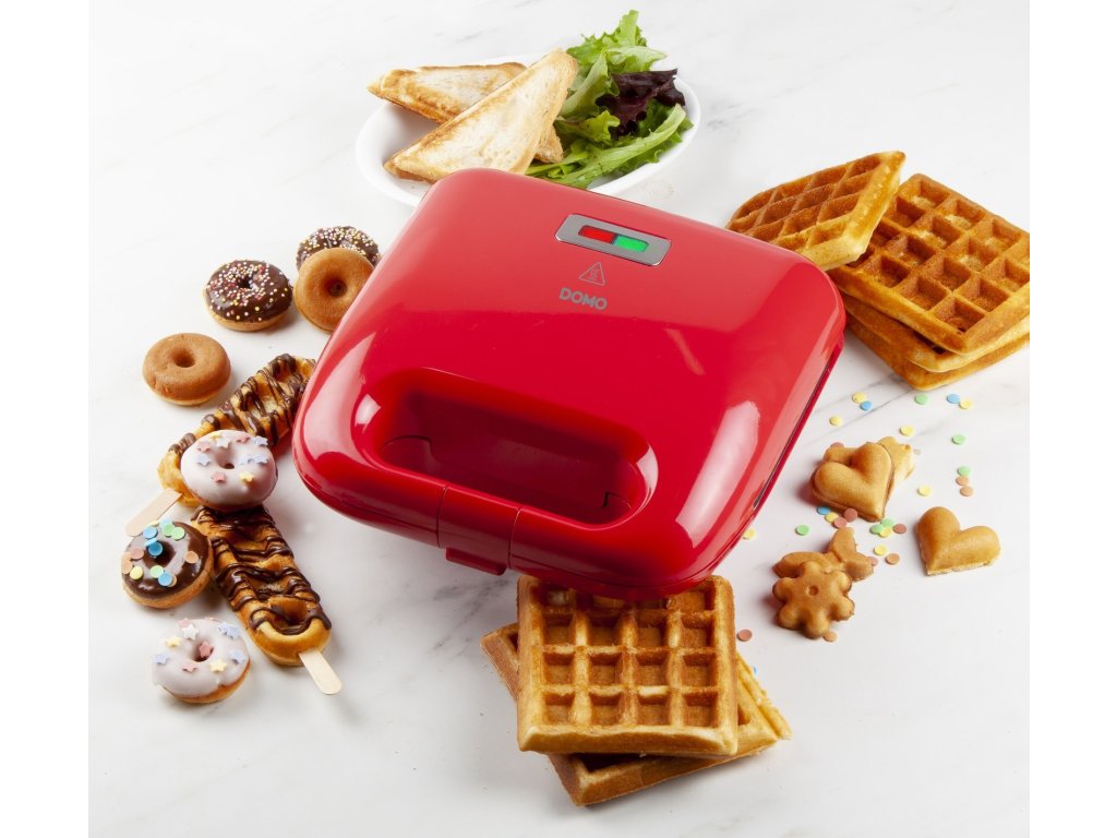 Vaflovač s výměnnými deskami udělá radost nejen každému kdo si rád pochutná na křupavých vaflích různých tvarů, ale díky různým pečícím deskám také na mini donutech, nebo trojúhelníkových sendvičích. Nepřilnavý povrch pečících desek zabrání nechtěnému připalování a usnadní jejich čištění. Správnou teplotu nahřátí signalizuje kontrolka nahřívání.